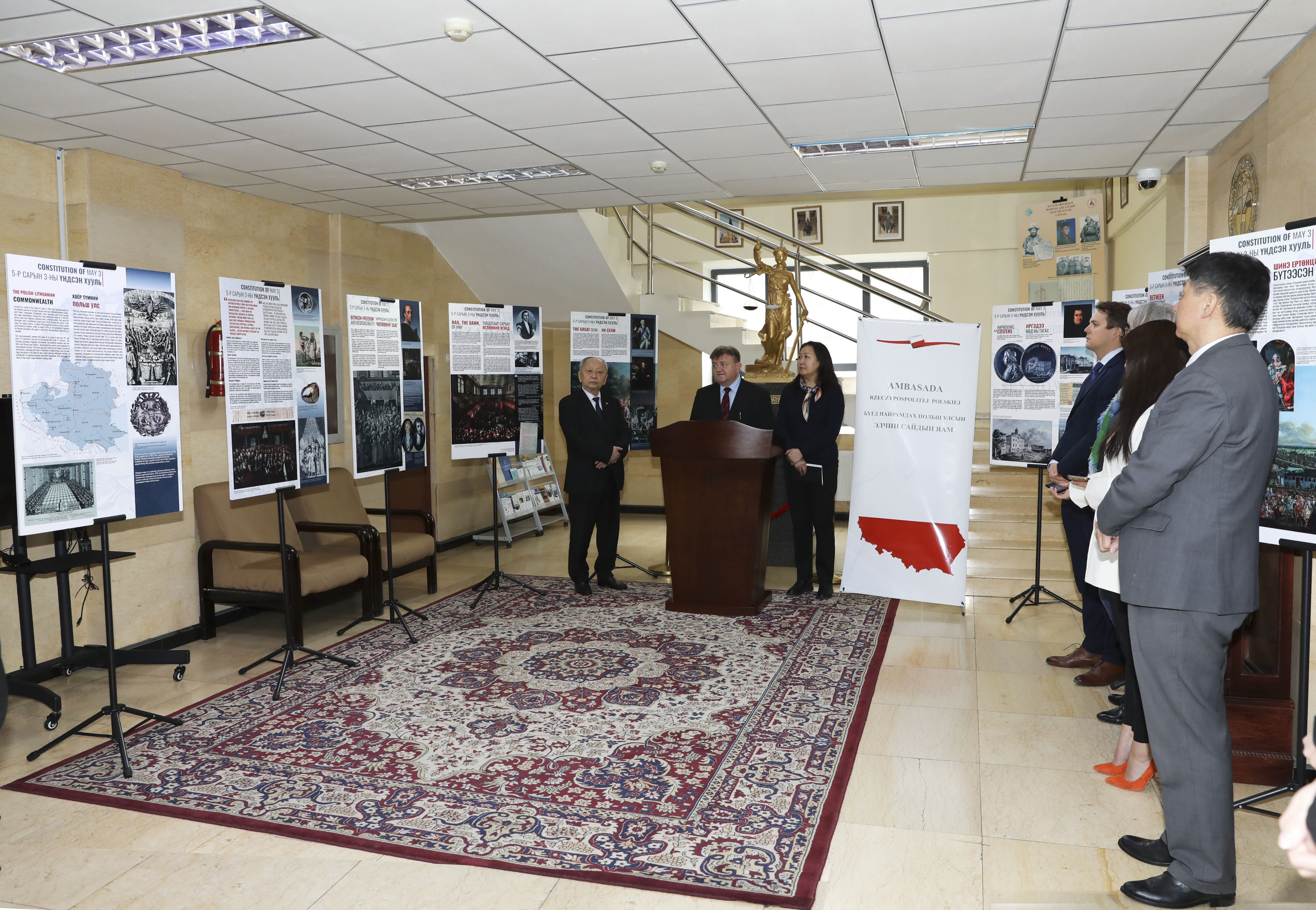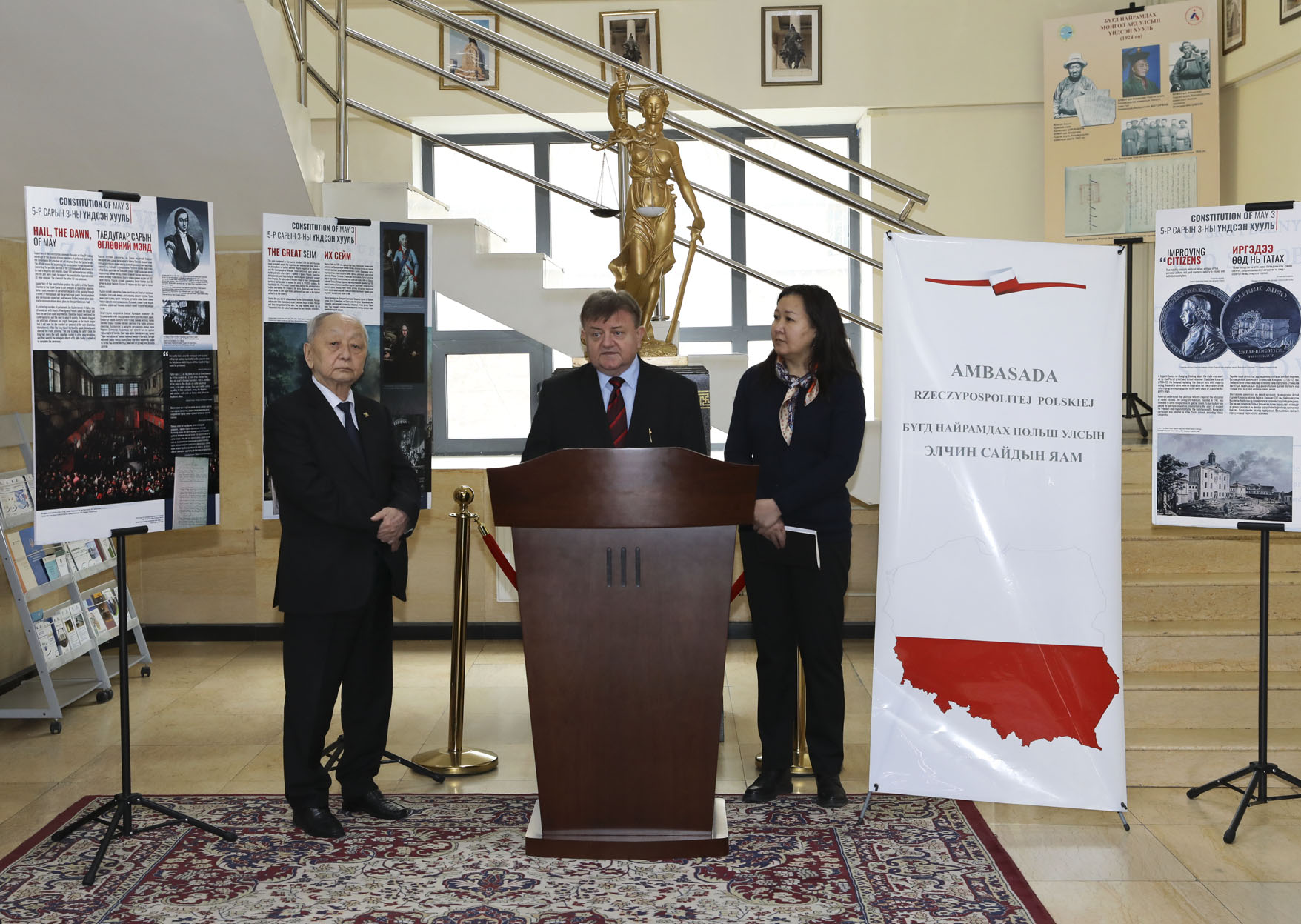 Ambasador K. Bojko podziękował za możliwość prezentacji wystawy w gmachu Trybunału Konstytucyjnego Mongolii i przedstawił polityczno-historyczne uwarunkowania, w których doszło do uchwalenia pierwszej europejskiej konstytucji. Przypomniał także, że po przemianach demokratycznych z 1989 r. Święto Konstytucji 3 Maja ponownie wróciło do kalendarza świąt państwowych.