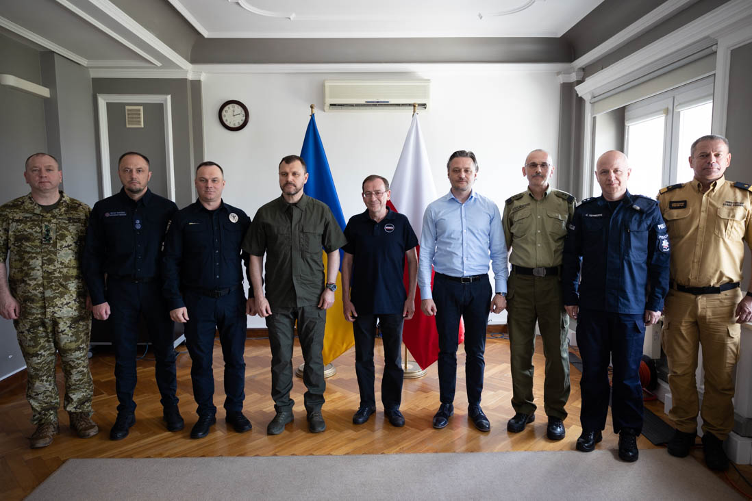 Today, on 26 June 2023, a meeting between Minister Mariusz Kamiński and Minister Ihor Klymenko was held in Rzeszów. The ministers of the interior of Poland and Ukraine talked about equipment handed over to the Ukrainian uniformed services as support. The meeting was also attended by Deputy Minister Bartosz Grodecki and chiefs of the Police, Border Guard and State Fire Service.