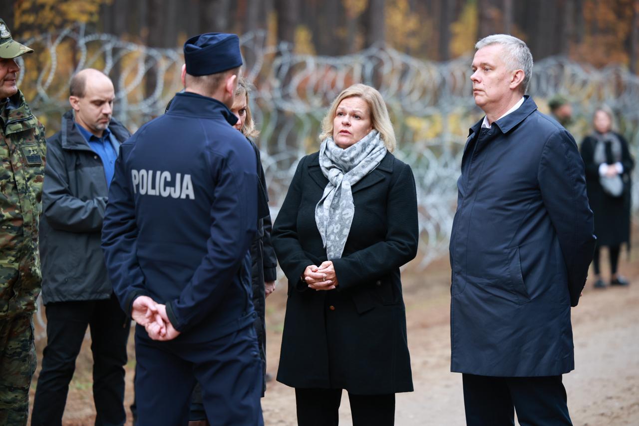 On Wednesday, 30 October the Minister of the Interior and Administration, Coordinator of Special Services Tomasz Siemoniak was joined by Nancy Faeser, Federal Minister of the Interior and Community for a visit to the Polish-Belarusian border. The politicians held a press conference at the Połowce-Pyaschatka border crossing in Podlasie, concerning the issue of security along the Polish-Belarusian border - the external border of the European Union.