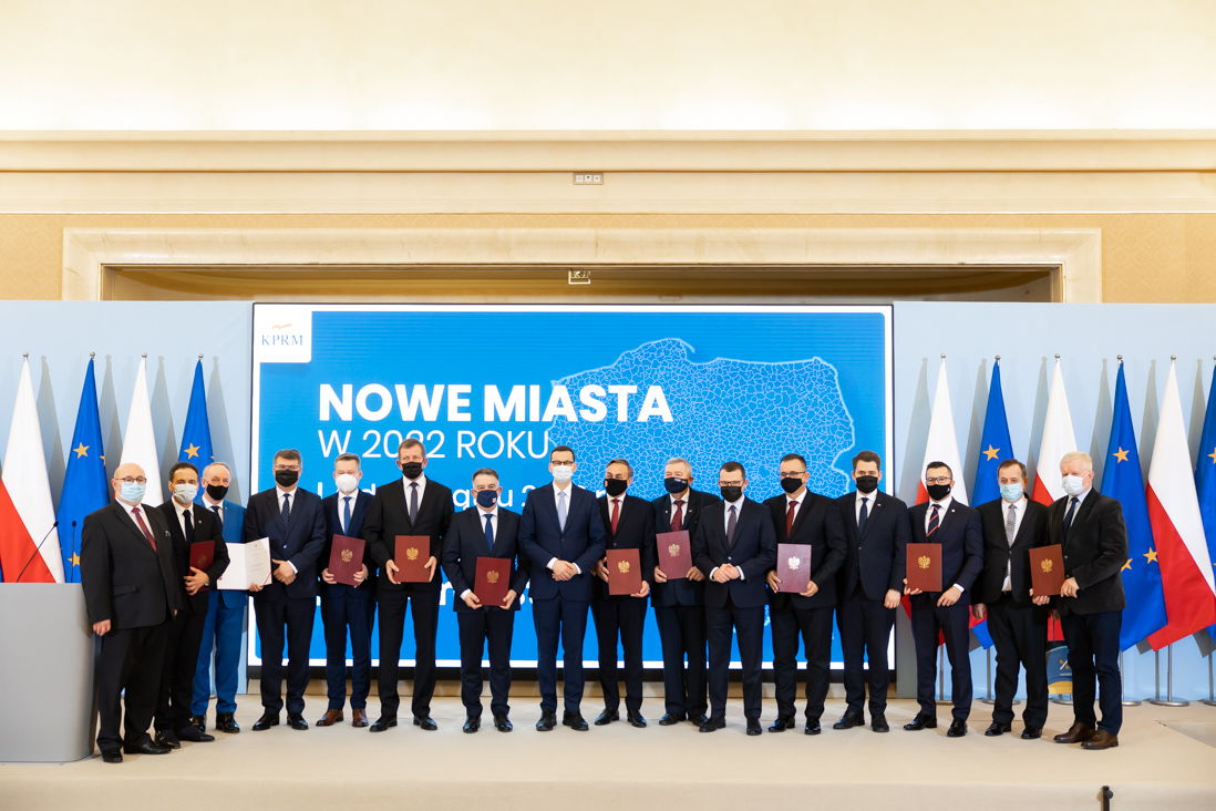 Od Nowego Roku na mapie Polski pojawi się 10 kolejnych miejscowości ze statusem miasta. Tym samym na mapie naszego kraju od 1 stycznia będą 964 miasta. Dziś (30 grudnia br.) przedstawiciele gmin odebrali z rąk premiera Mateusza Morawieckiego oraz wiceministrów: Macieja Wąsika i Pawła Szefernakera akty nadania statusu miasta.