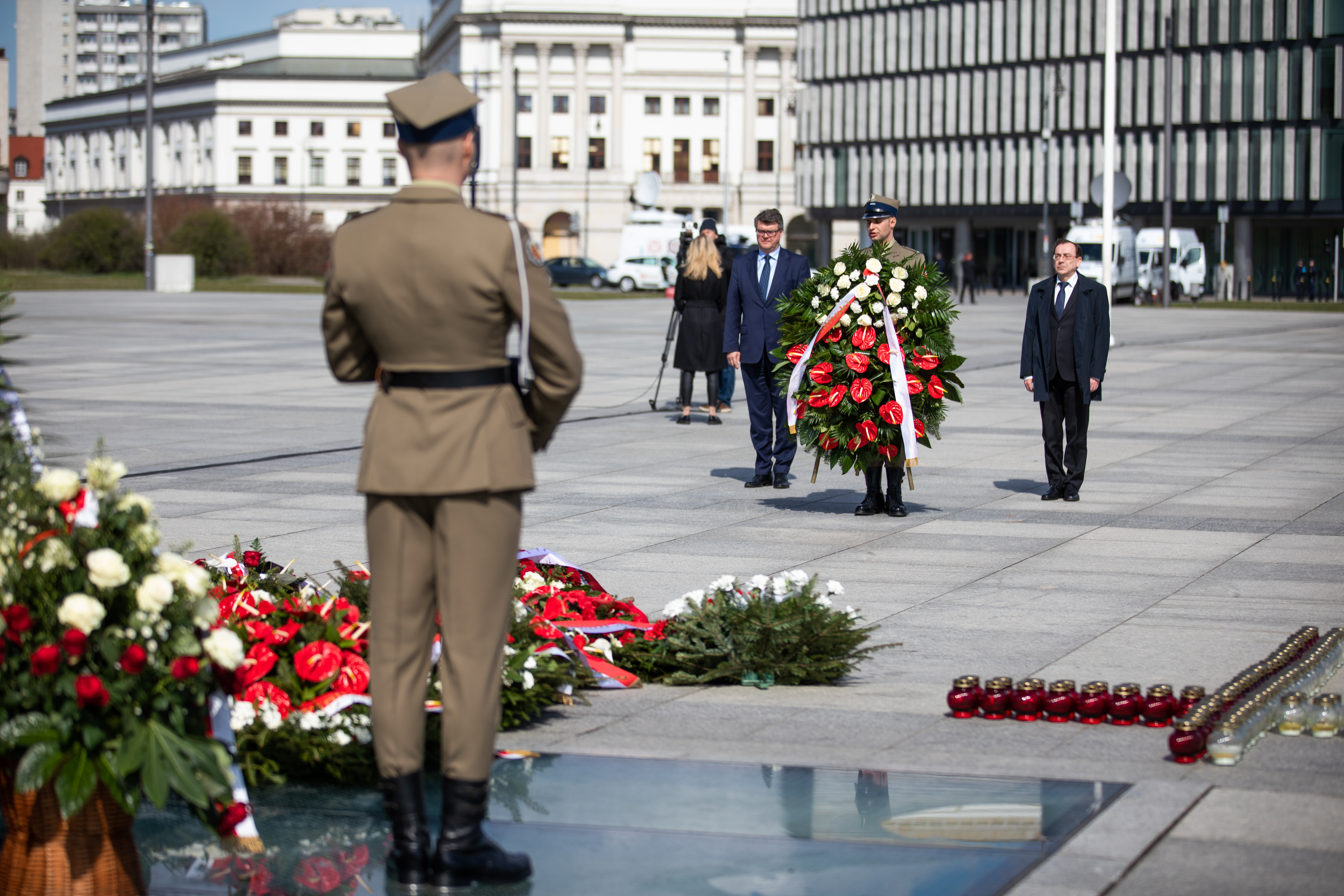 Rano o godz. 8:41 minister Mariusz Kamiński i wiceminister Maciej Wąsik złożyli kwiaty przed obeliskiem upamiętniającym funkcjonariuszy Biura Ochrony Rządu, którzy zginęli na służbie 10 kwietnia 2010 roku. Pamięć funkcjonariuszy uczcił również mjr Paweł Olszewski, komendant Służby Ochrony Państwa.
