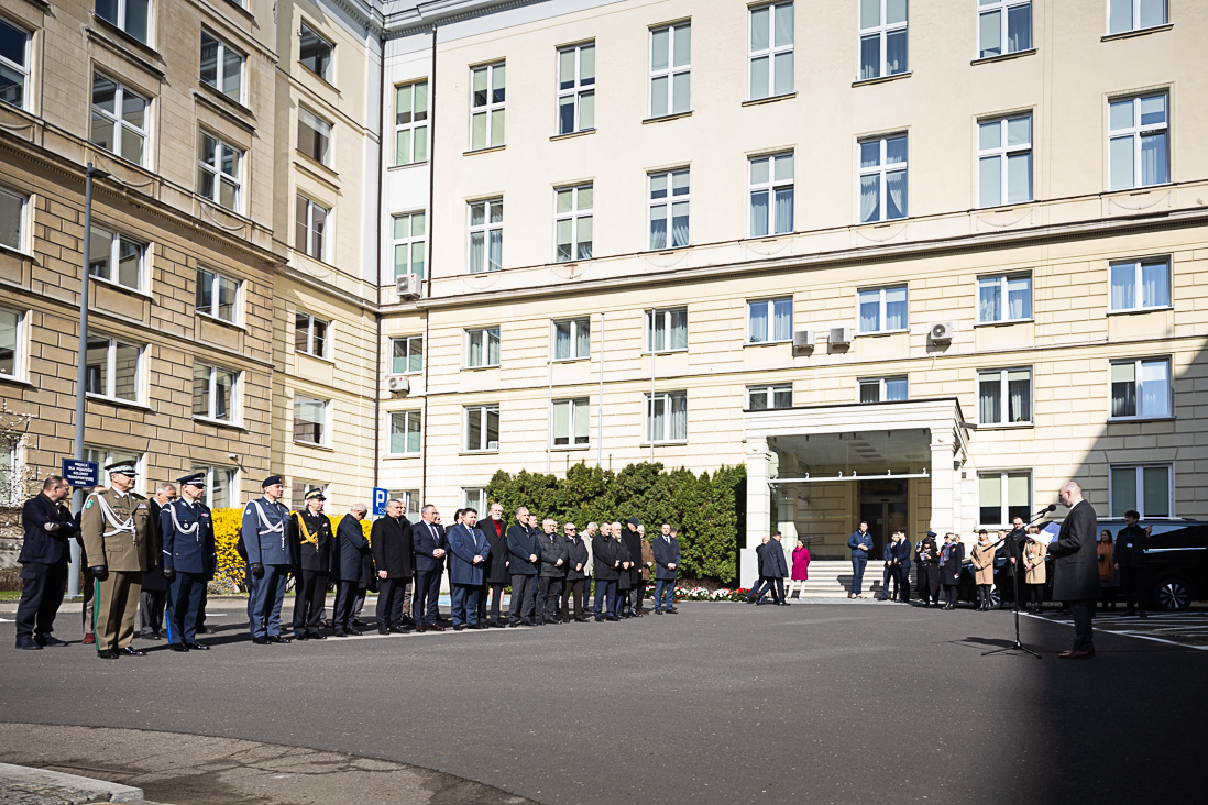 Uroczystość odbyła się na dziedzińcu MSWiA, gdzie znajduje się popiersie Krzysztofa Kozłowskiego. Kwiaty złożyli przedstawiciele najważniejszych instytucji w państwie. Hołd byłemu ministrowi spraw wewnętrznych oddali także wicemarszałek Senatu Rafał Grupiński, minister kultury i dziedzictwa narodowego Bartłomiej Sienkiewicz, senator Bogdan Klich, a także komendanci służb podległych MSWiA.