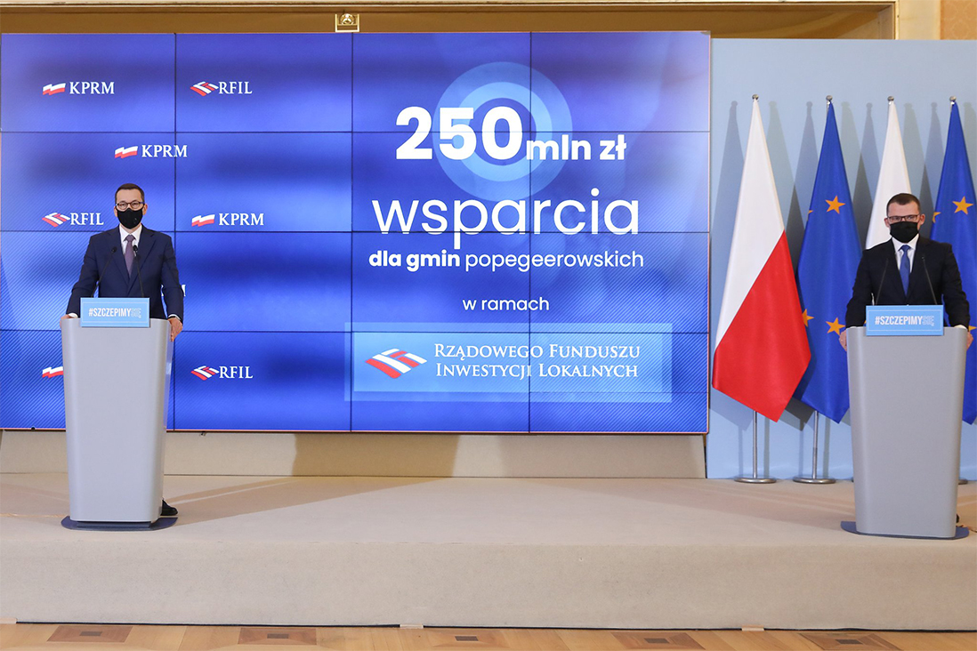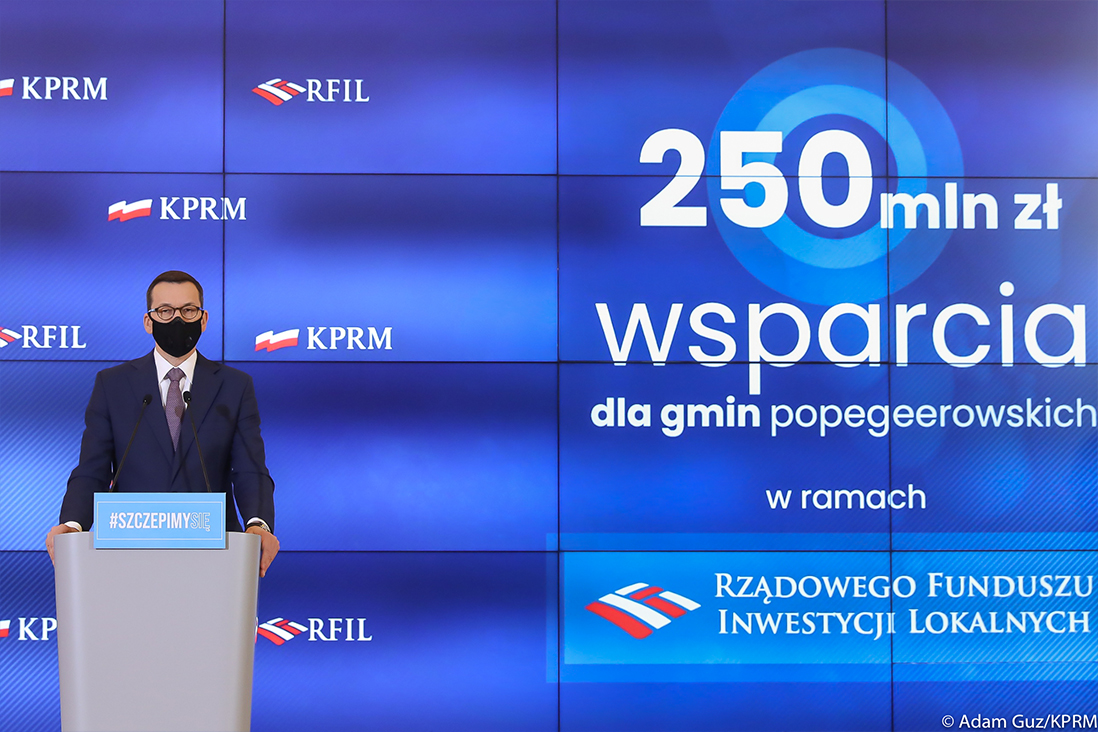 Premier Mateusz Morawiecki wskazał, że program jest kierowany do gmin, które ucierpiały w wyniku zaniedbań po likwidacji państwowych gospodarstw rolnych. - Tak jak zapaść terenów popegeerowskich była widoczna gołym okiem, tak dzisiaj nasz program w ciągu 12-24 miesięcy też będzie widoczny gołym okiem – powiedział premier. - Chcemy bardzo mocno poprawić szanse rozwojowe terenów zaniedbanych w czasach III RP – dodał.