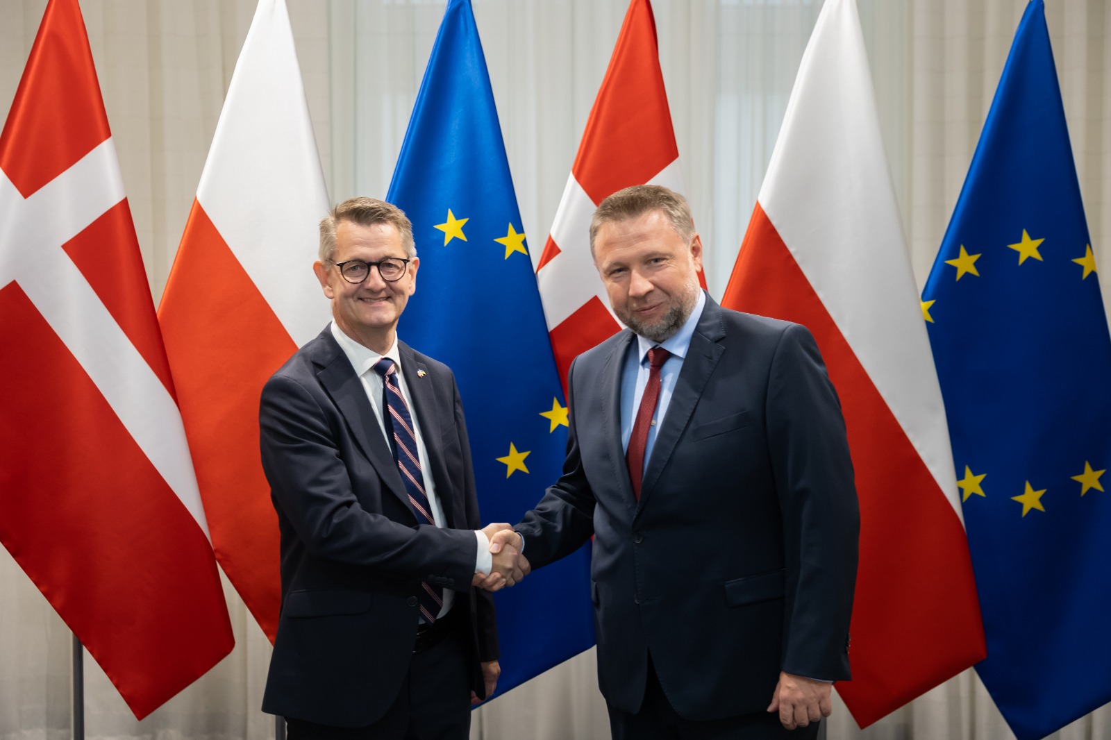 Następnego dnia Szef MSWiA Marcin Kierwiński omówił z duńskim ministrem ds. odporności i gotowości Torstenem Schackiem Pedersenem kwestie bezpieczeństwa, współpracę cywilno-wojskową w ramach UE i NATO, a także ochronę podmorskiej infrastruktury krytycznej.