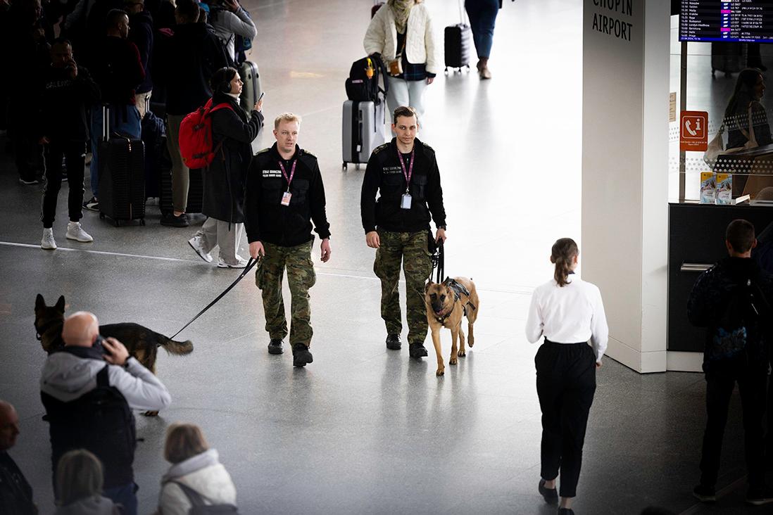 „Czworonożni funkcjonariusze” wspierają strażników granicznych w wypełnianiu zadań na Lotnisku Chopina w Warszawie. Ze względu na specyfikę wykonywanych zadań, służbę na lotniskach pełnią przede wszystkim psy specjalne. Są one wyszkolone m.in. do wyszukiwania narkotyków, materiałów wybuchowych czy broni. Przeszukują samoloty, pojazdy, kontenery, bagaże i pomieszczenia.