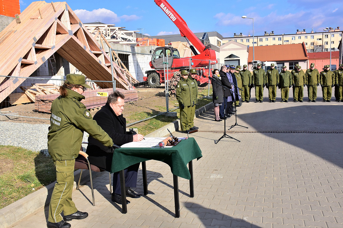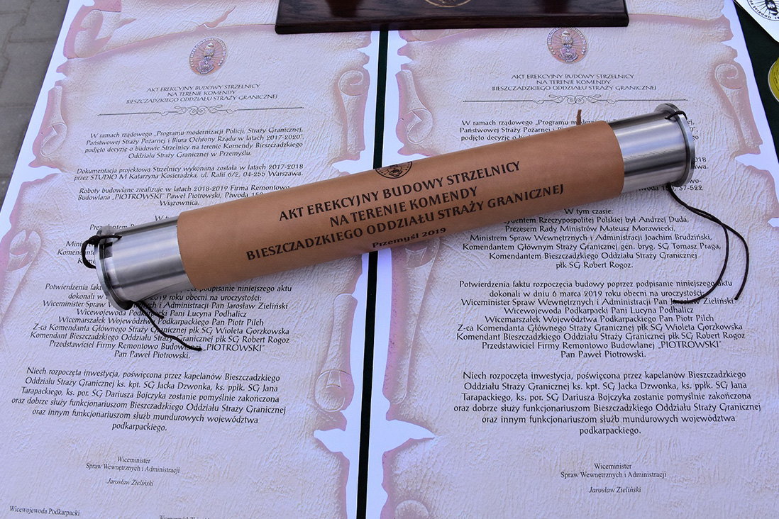 Wiceminister Jarosław Zieliński wziął dziś (6 marca br.) także udział w uroczystości wmurowania aktu erekcyjnego pod budowę strzelnicy w Bieszczadzkim Oddziale Straży Granicznej w Przemyślu. Strzelnica powstaje dzięki środkom Programu Modernizacji Służb Mundurowych MSWiA. Wartość tej inwestycji to prawie 9 mln zł. Prace budowlane mają się zakończyć w ostatnim kwartale 2019 r.