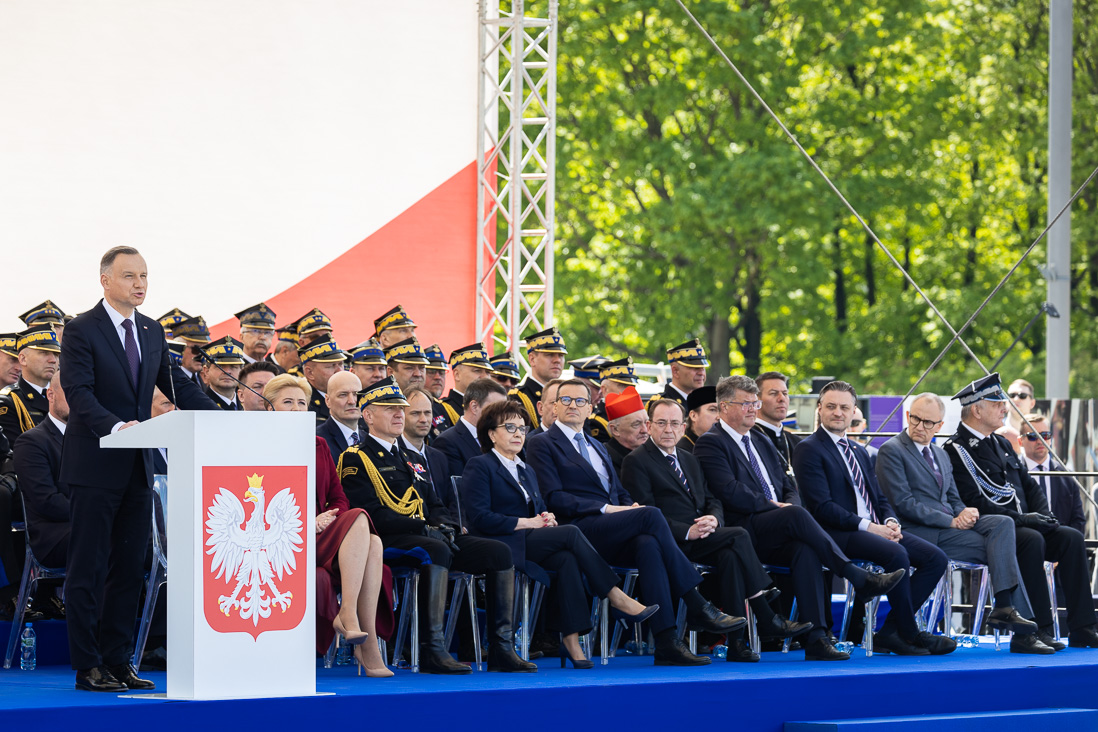 W czasie uroczystości prezydent Andrzej Duda mówił o tym, jak ważne zadania realizują strażacy z PSP i OSP, zarówno w kraju jak i poza jego granicami.