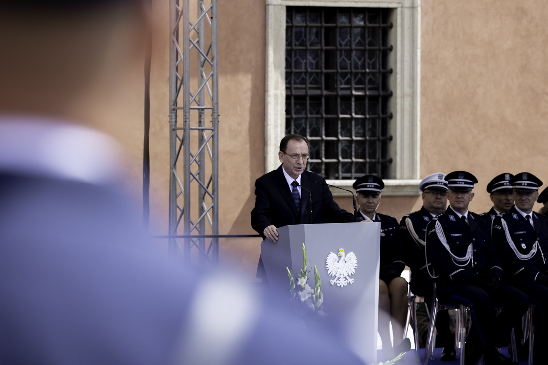 Podczas uroczystości szef MSWiA złożył życzenia funkcjonariuszom i nowym oficerom Policji. Pogratulował również wszystkim odznaczonym.
