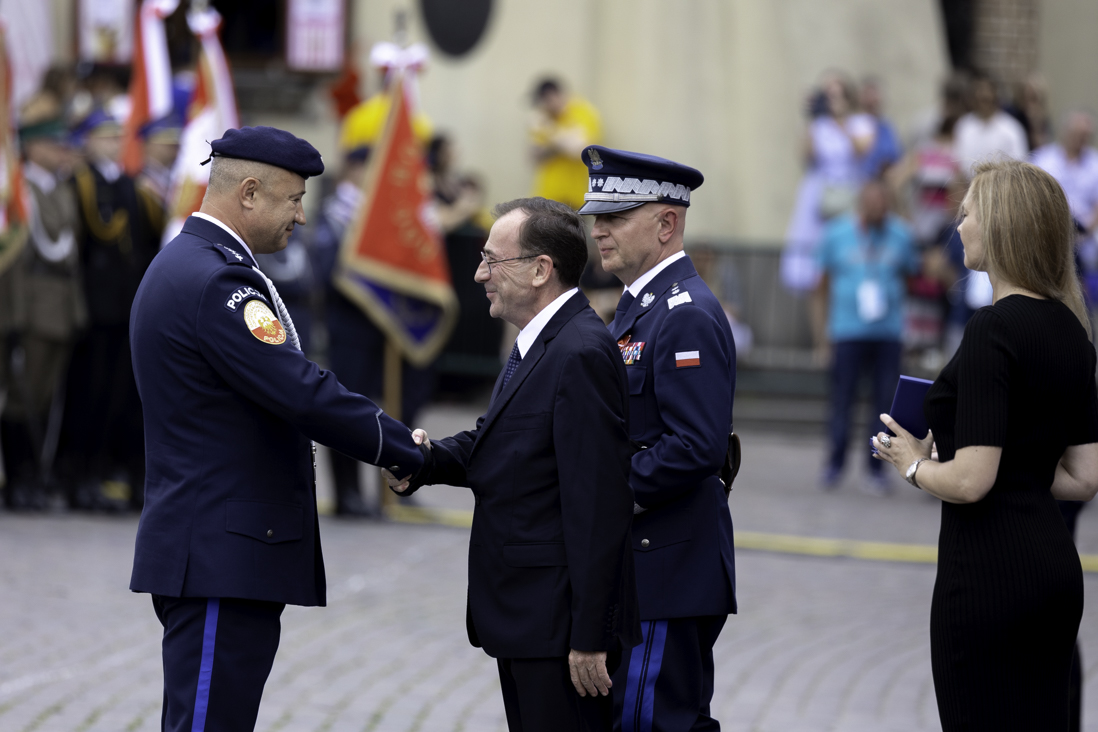 W poniedziałek, 24 lipca br. na placu Zamkowym w Warszawie odbyły się Centralne Obchody Święta Policji, w których uczestniczyli minister Mariusz Kamiński oraz wiceministrowie Błażej Poboży i Bartosz Grodecki, a także dyrektor generalny MSWiA Dariusz Nowak. W uroczystości wziął udział również prezydent Andrzej Duda.