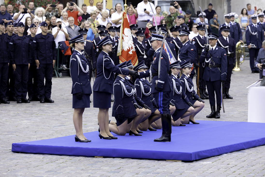 Podczas dzisiejszej uroczystości miała miejsce również promocja na pierwszy stopień oficerski absolwentów Wyższej Szkoły Policji w Szczytnie. Podczas wydarzenia, w szeregi garnizonu stołecznego Policji, zostali przyjęci nowi funkcjonariusze, którzy złożyli ślubowanie.