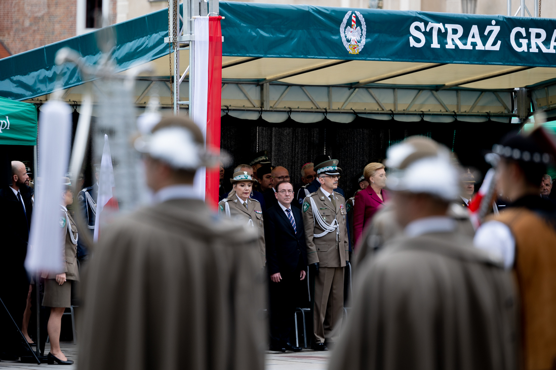 Przed dzisiejszym wydarzeniem minister Mariusz Kamiński wraz z komendantem głównym SG gen. dyw. Tomaszem Pragą i jego zastępcami złożyli przed uroczystościami kwiaty na grobie Lecha oraz Marii Kaczyńskich oraz marszałka Józefa Piłsudskiego w krypcie na Wawelu.