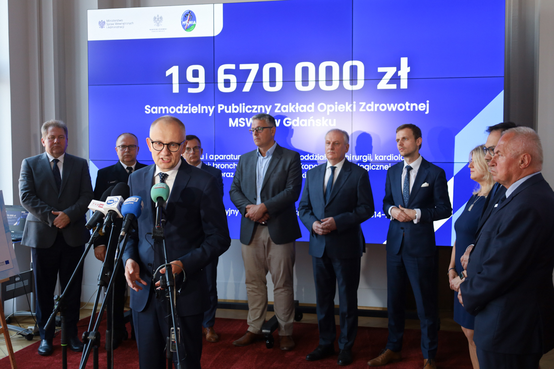 Wiceminister Błażej Poboży powiedział, że wręczenie promesy to ważne wydarzenie dla służby zdrowia podległej MSWiA. Mówił też o zaangażowaniu szpitala MSWiA w Gdańsku w pomoc pacjentom podczas pandemii.