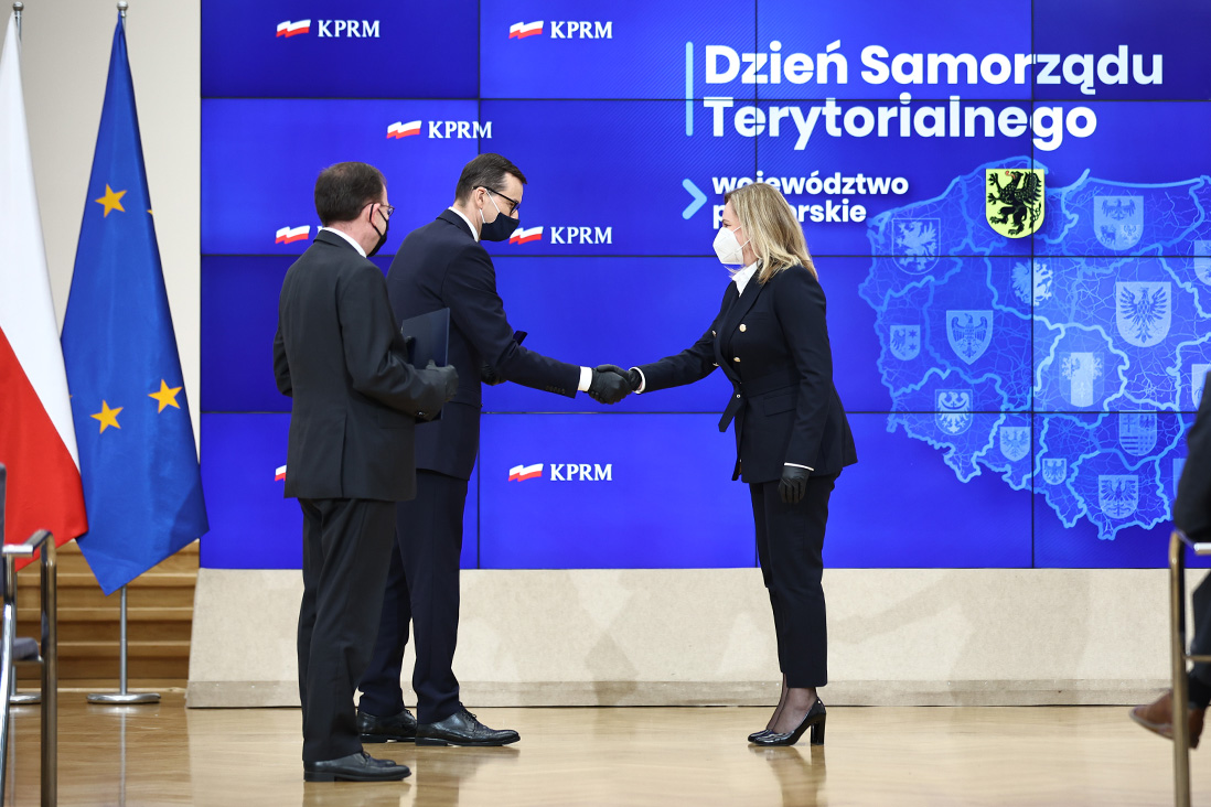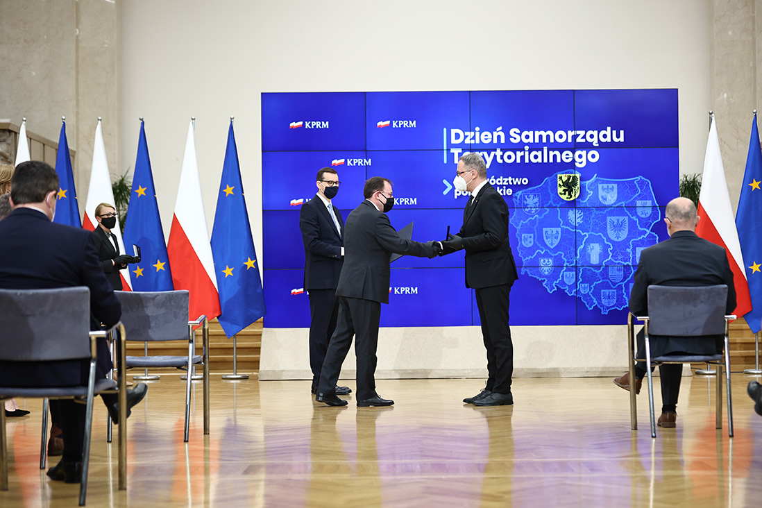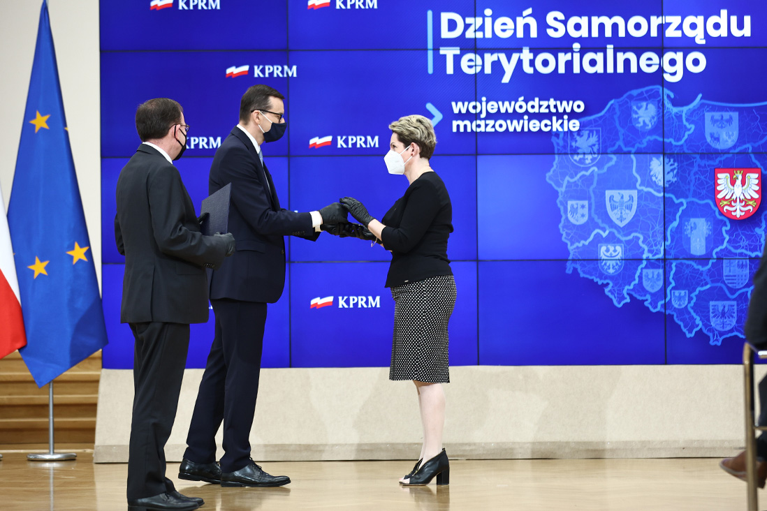 – Rząd i samorząd mają inne zadania, ale cel mamy jeden, wspólny – żeby Polacy mogli żyć na poziomie według standardów europejskich – powiedział premier Mateusz Morawiecki podczas uroczystości z okazji Dnia Samorządu Terytorialnego. Obchody tego święta odbyły się w czwartek (27 maja br.) w Kancelarii Prezesa Rady Ministrów, z udziałem ministra Mariusza Kamińskiego, wiceministra Macieja Wąsika oraz wiceministra Pawła Szefernakera. Podczas uroczystego spotkania ponad 60 samorządowców otrzymało Odznakę Honorową za Zasługi dla Samorządu Terytorialnego.