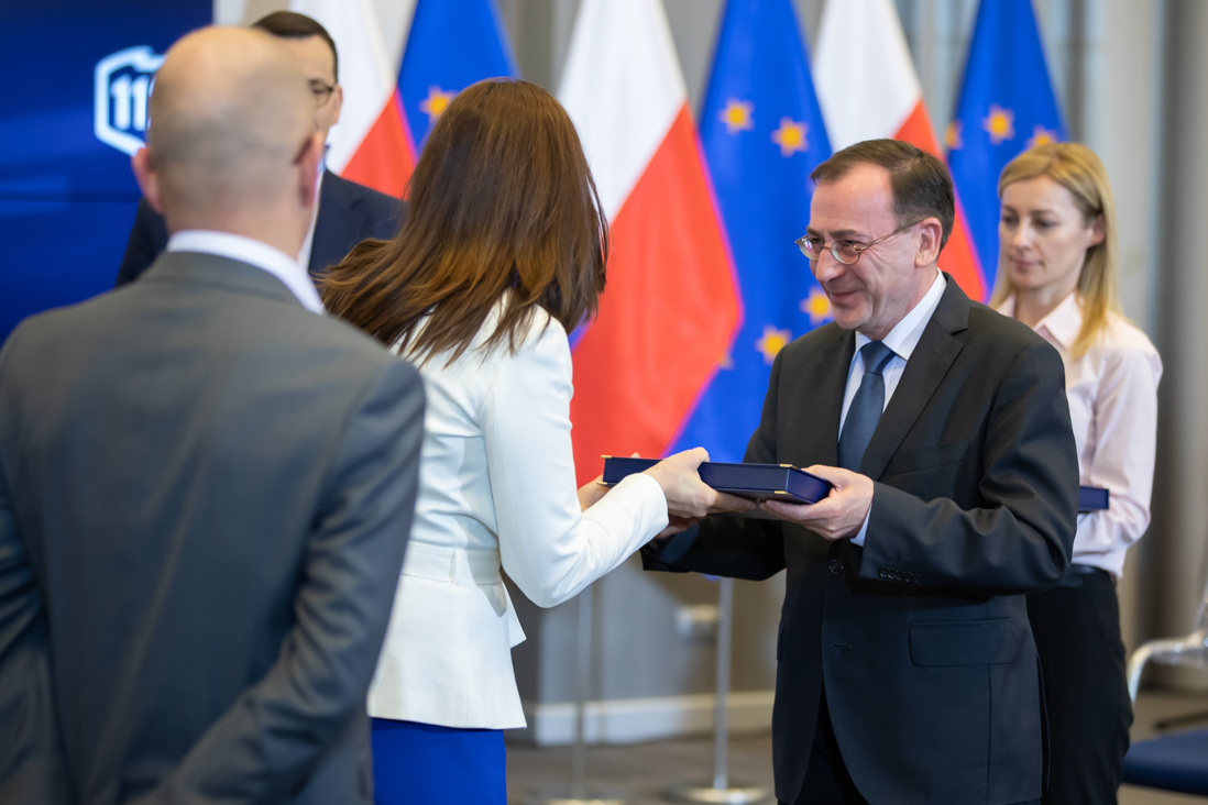 Podczas spotkania premier Mateusz Morawiecki oraz minister Mariusz Kamiński wyróżnili 34 operatorów numerów alarmowych z całej Polski, którzy ze szczególnym zaangażowaniem i odpowiedzialnością wypełniają swoje zawodowe obowiązki. Pamiątkowe podziękowania wręczono także kierownikom wszystkich CPR.