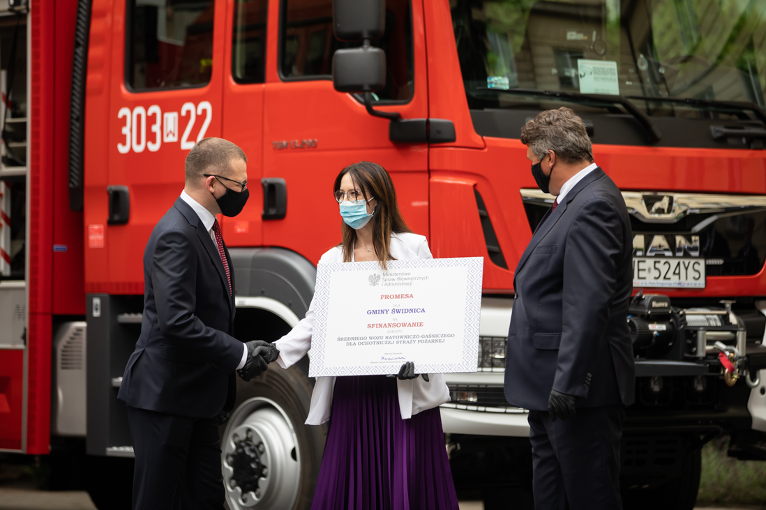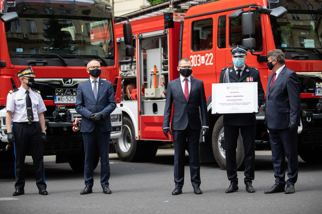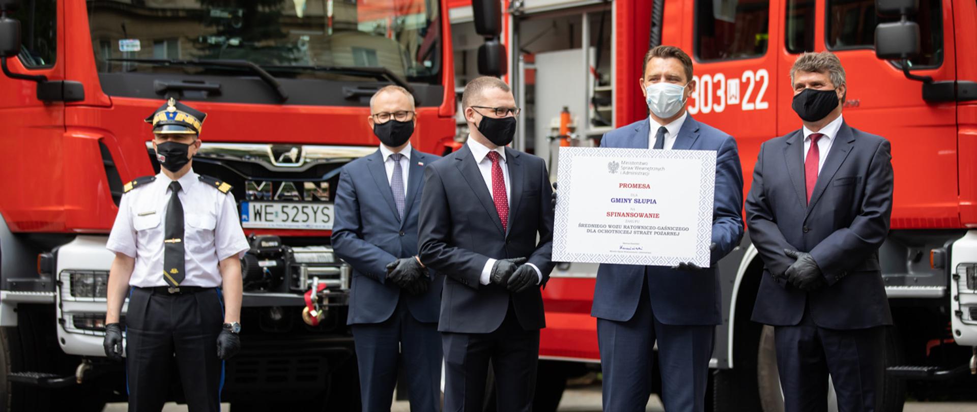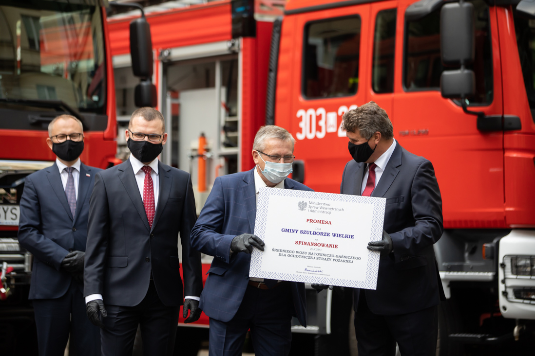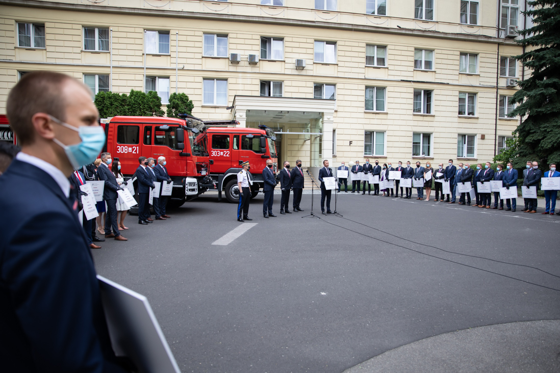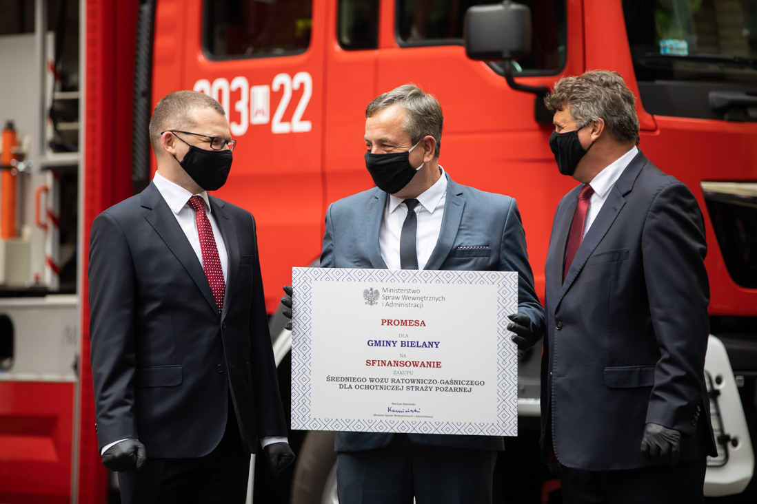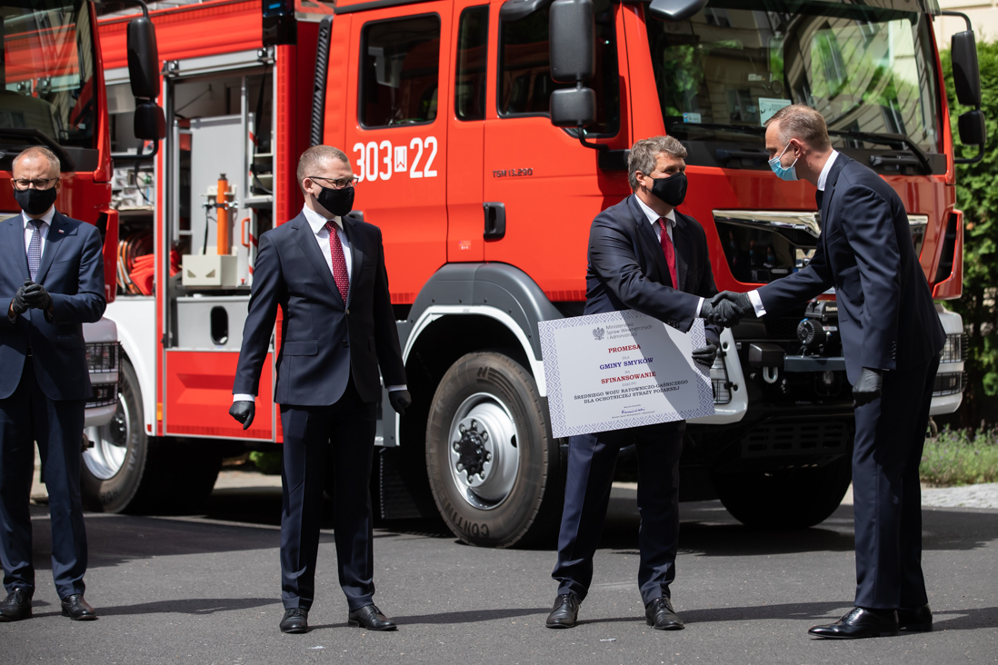 – Wybory to święto demokracji i cieszę się, że na tym święcie zyskują Ochotnicze Straże Pożarne. To są bohaterowie naszych czasów – ludzie, którzy pracują zawodowo a znajdują czas żeby nieść pomoc swoim sąsiadom – powiedział dziś (27 lipca 2020 r.) wiceminister Maciej Wąsik, wręczając promesy na zakup wozów bojowych dla OSP. W uroczystości wzięli też udział wiceministrowie Paweł Szefernaker i Błażej Poboży oraz komendant główny PSP nadbryg. Andrzej Bartkowiak.