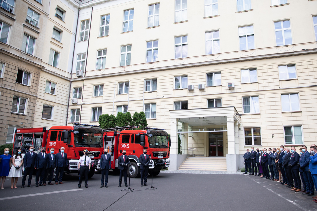 Promesy na zakup średnich wozów ratowniczo-gaśniczych odebrali dziś wójtowie i burmistrzowie 49 gmin (do 20 tys. mieszkańców) z całej Polski. Każda z wyróżnionych gmin osiągnęła najwyższą frekwencję w drugiej turze wyborów prezydenckich w każdym z 49 byłych województw (według stanu na 31.12.1998 r.). Wartość jednego samochodu to blisko 800 tys. zł.