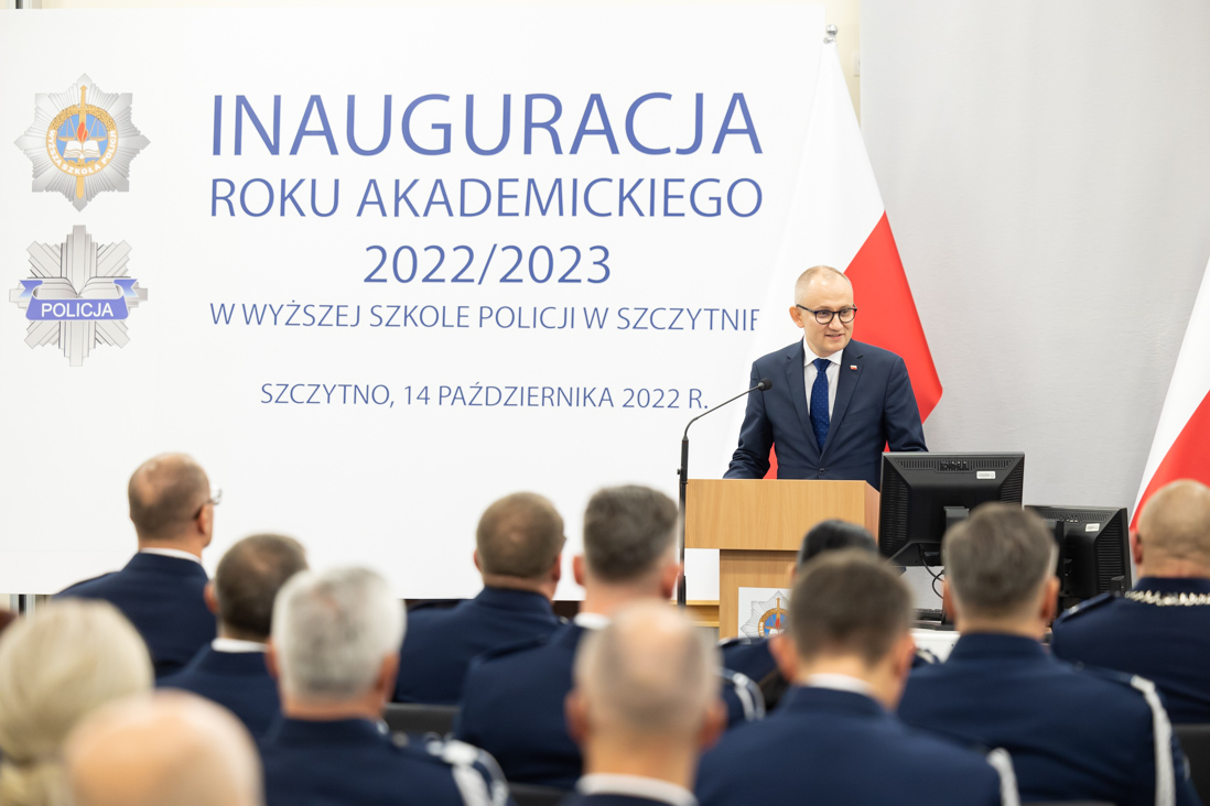 Podsekretarz stanu w MSWiA podziękował również kadrze naukowej za trud i poświęcenie. Zwrócił także uwagę na wysoki poziom nauczania uczelni.