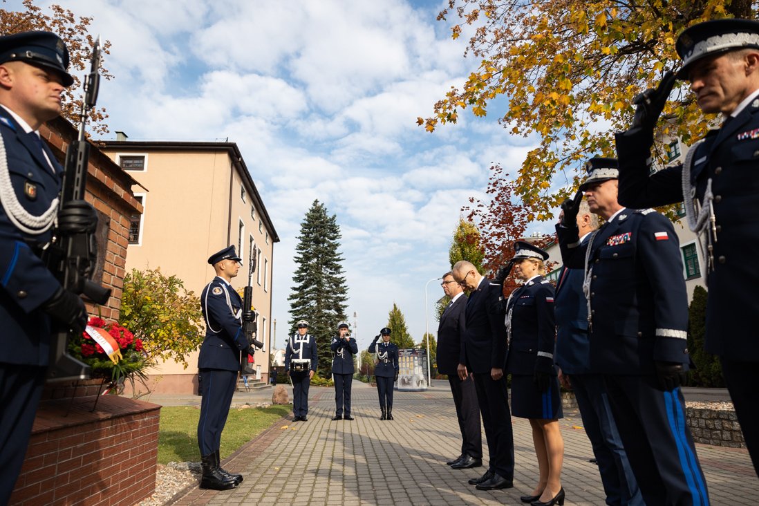 Przed rozpoczęciem uroczystości wiceminister Błażej Poboży, gen. insp. Jarosław Szymczyk, wojewoda Artur Chojecki oraz insp. Iwona Klonowska wraz z delegacją promowanych funkcjonariuszy złożyli kwiaty pod tablicą upamiętniającą policjantów zamordowanych w Kalininie.