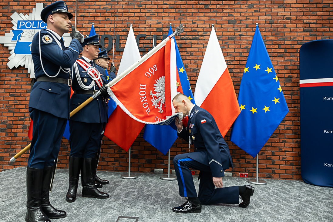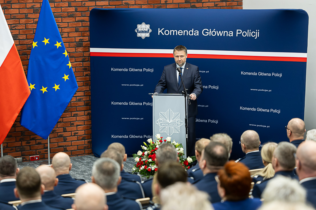 Minister podkreślił jednocześnie, że przed komendantem oraz wszystkimi funkcjonariuszami Policji stoi wielkie zobowiązanie wobec ojczyzny i wobec Polaków.