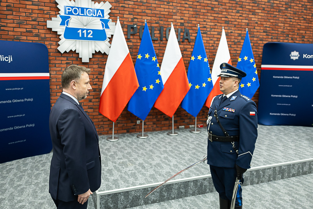 W związku z wczorajszą decyzją Prezesa Rady Ministrów, szef MSWiA wziął dziś (21 marca br.) udział w uroczystej zbiórce zorganizowanej w Komendzie Głównej Policji. Podczas wydarzenia minister Marcin Kierwiński wręczył insp. Markowi Boroniowi akt powołania na stanowisko komendanta głównego Policji.