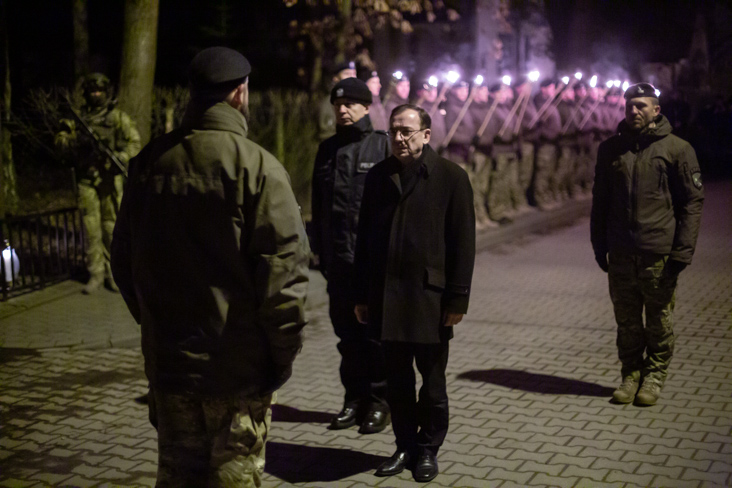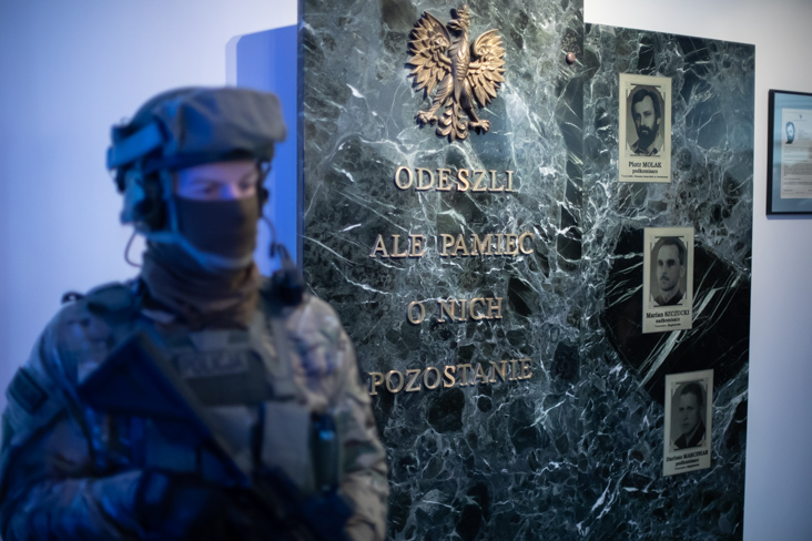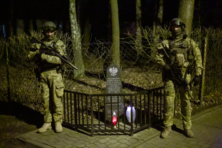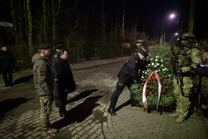 Minister Mariusz Kamiński razem z gen. insp. Jarosławem Szymczykiem, Komendantem Głównym Policji oraz mł. insp. Dariuszem Ziębą, dowódcą Centralnego Pododdziału Kontrterrorystycznego Policji BOA, złożyli w nocy w Magdalence wieniec pod pomnikiem upamiętniającym poległych policjantów.