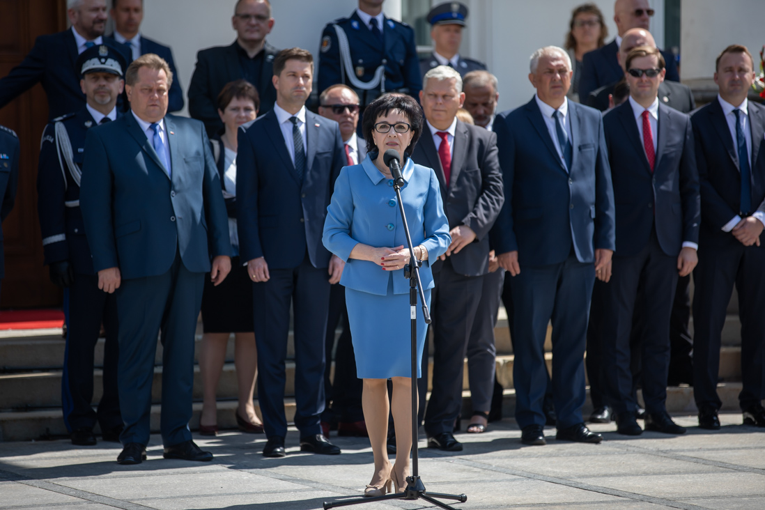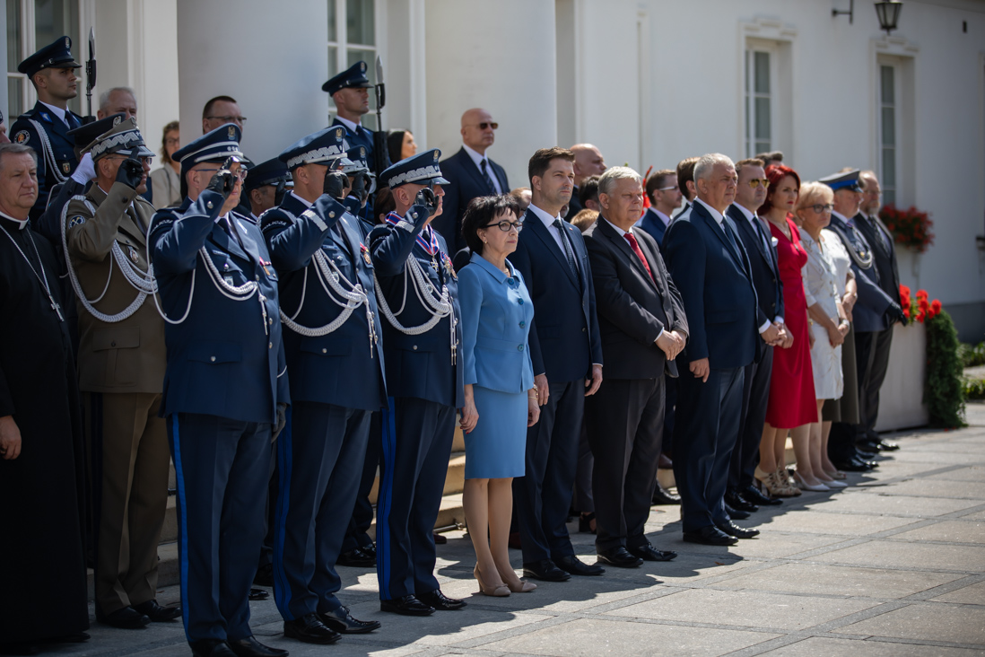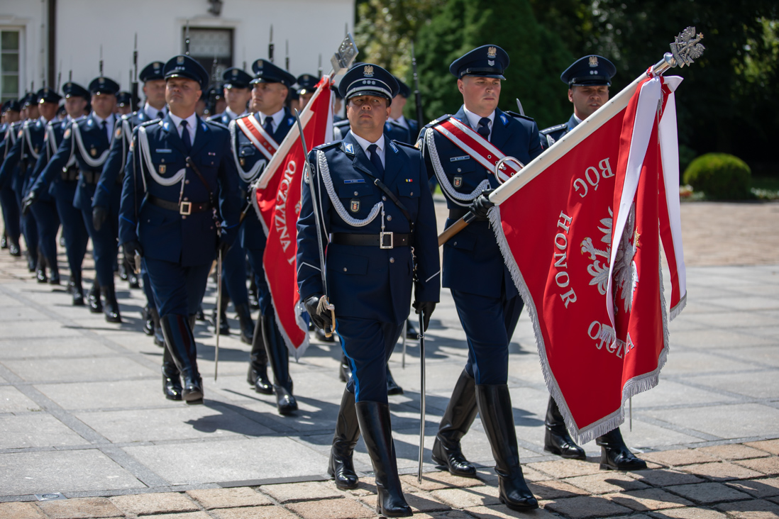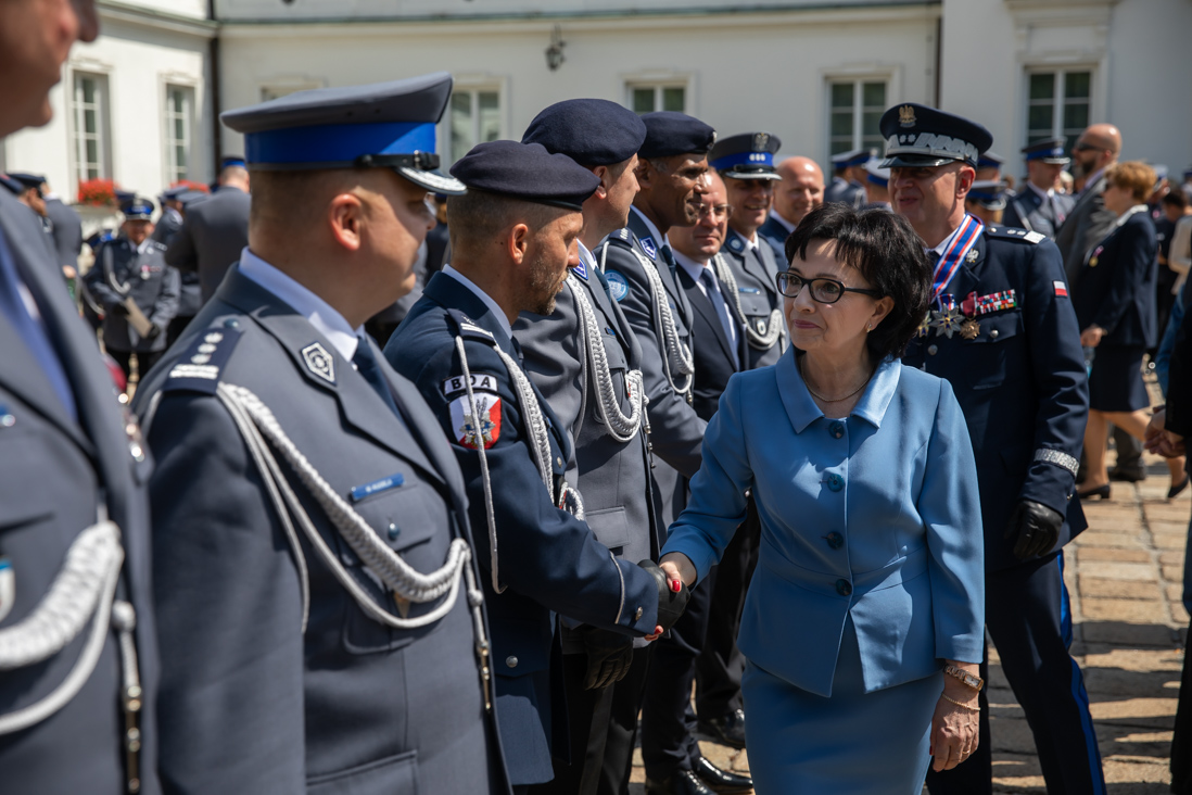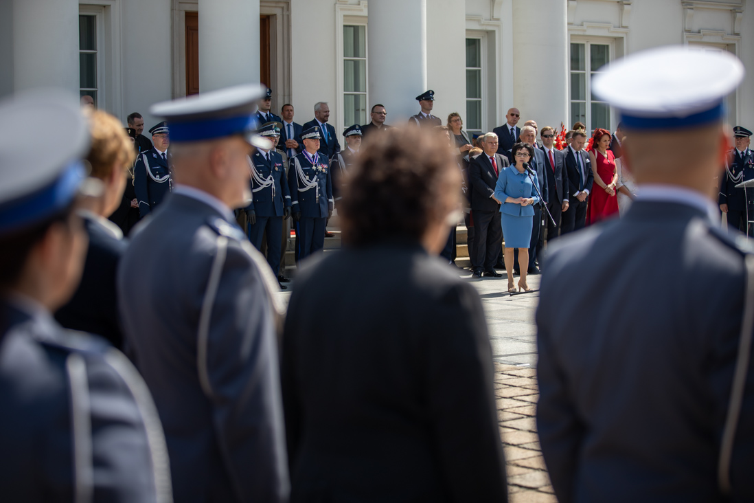 Uroczystości odbywające się dziś na dziedzińcu Belwederu stanowiły jeden z elementów obchodów 100-lecia utworzenia Policji Państwowej. - Wszyscy Wam dziękujemy za Wasz trud, za Waszą ciężką, odpowiedzialną i często niebezpieczną służbę. Dziękujemy też pracownikom cywilnym, którzy wspierają Was każdego dnia – powiedziała minister Elżbieta Witek.