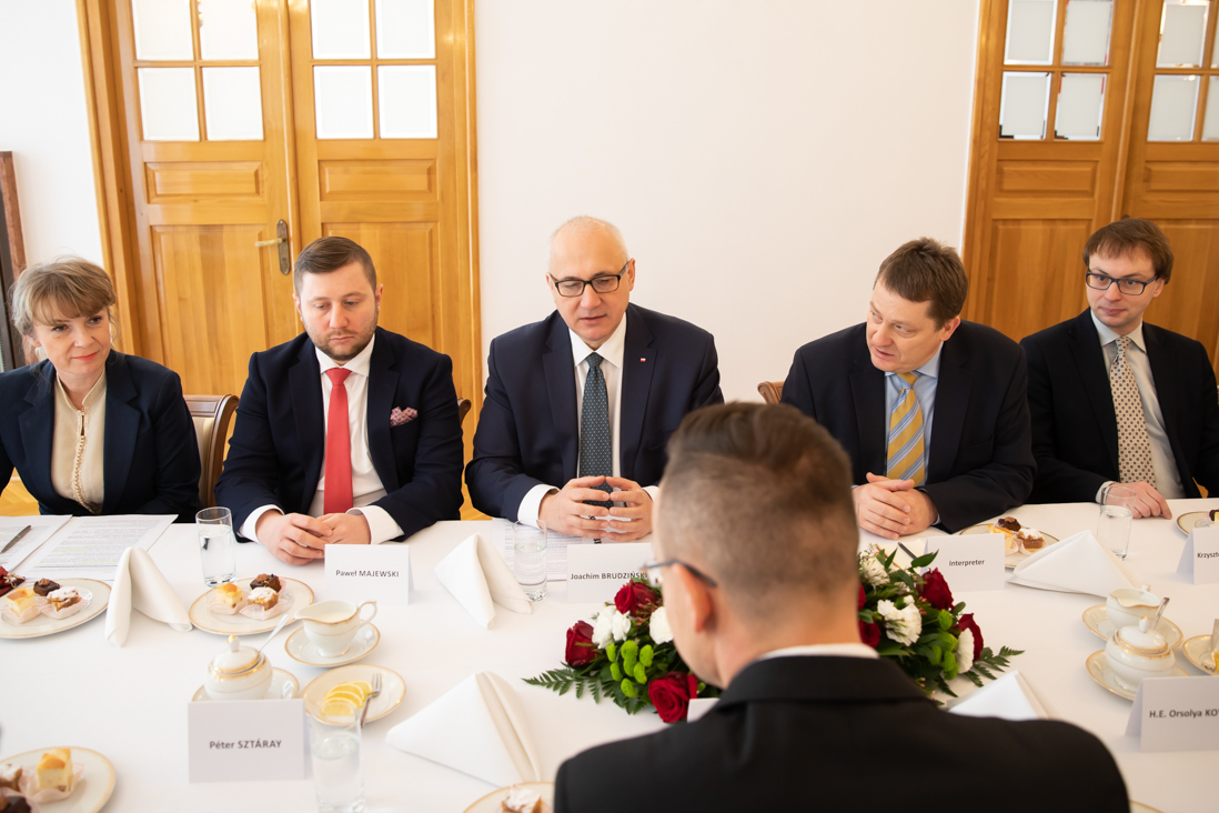 W dzisiejszym spotkaniu, oprócz Ministrów Joachima Brudzińskiego i Pétera Szijjártó, ze strony polskiej wzięli także udział wiceministrowie spraw wewnętrznych i administracji: Krzysztof Kozłowski, Paweł Majewski i Renata Szczęch, natomiast ze strony węgierskiej wiceministrowie Péter Sztáray, Ferenc Kumin, Ferenc Dancs oraz Orsolya Kovács - Ambasador Węgier w Warszawie.