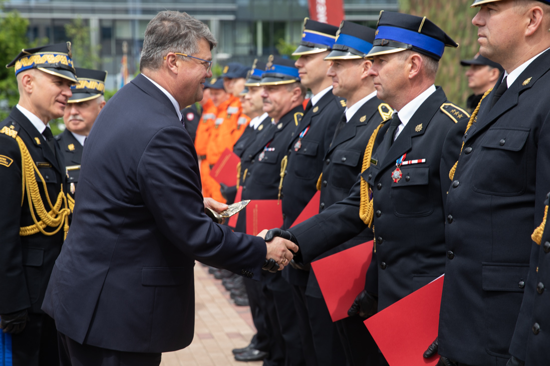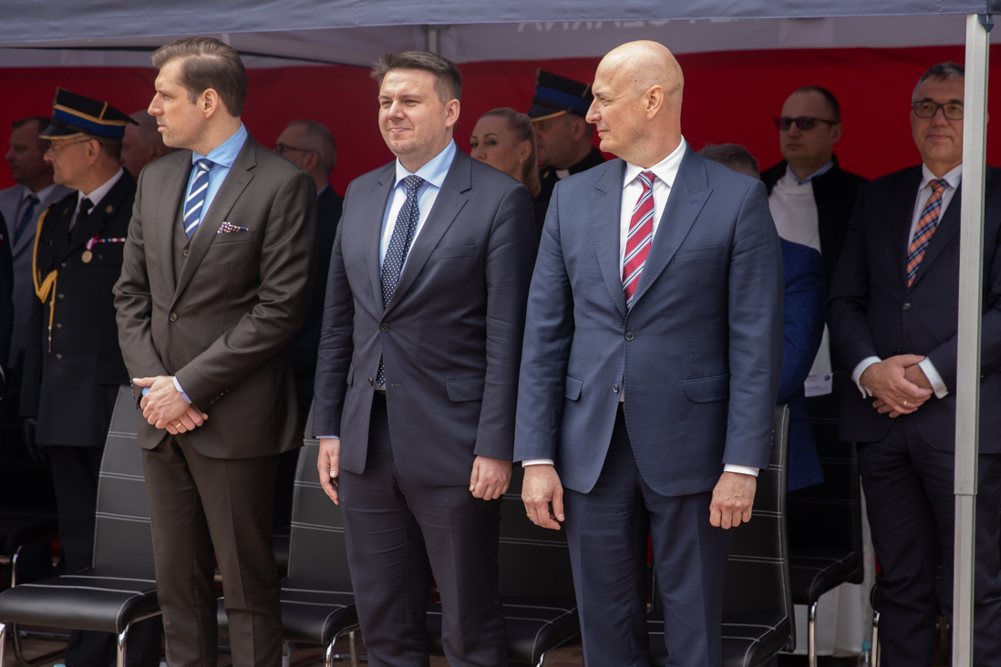 W czwartek, 18 maja br. wiceminister Maciej Wąsik wziął udział w Mazowieckich Obchodach Dnia Strażaka, które odbyły się w Komendzie Wojewódzkiej PSP w Warszawie. Podczas uroczystości zostały wręczone ordery, odznaczenia oraz akty nadania wyższych stopni służbowych. Ponadto przedstawiciele czterech jednostek PSP odebrali nowe pojazdy ratowniczo-gaśnicze. W wydarzeniu uczestniczyli też m.in. wicepremier Henryk Kowalczyk, komendant główny PSP gen. brygadier Andrzej Bartkowiak oraz mazowiecki komendant wojewódzki PSP nadbryg. Jarosław Piotrowski.