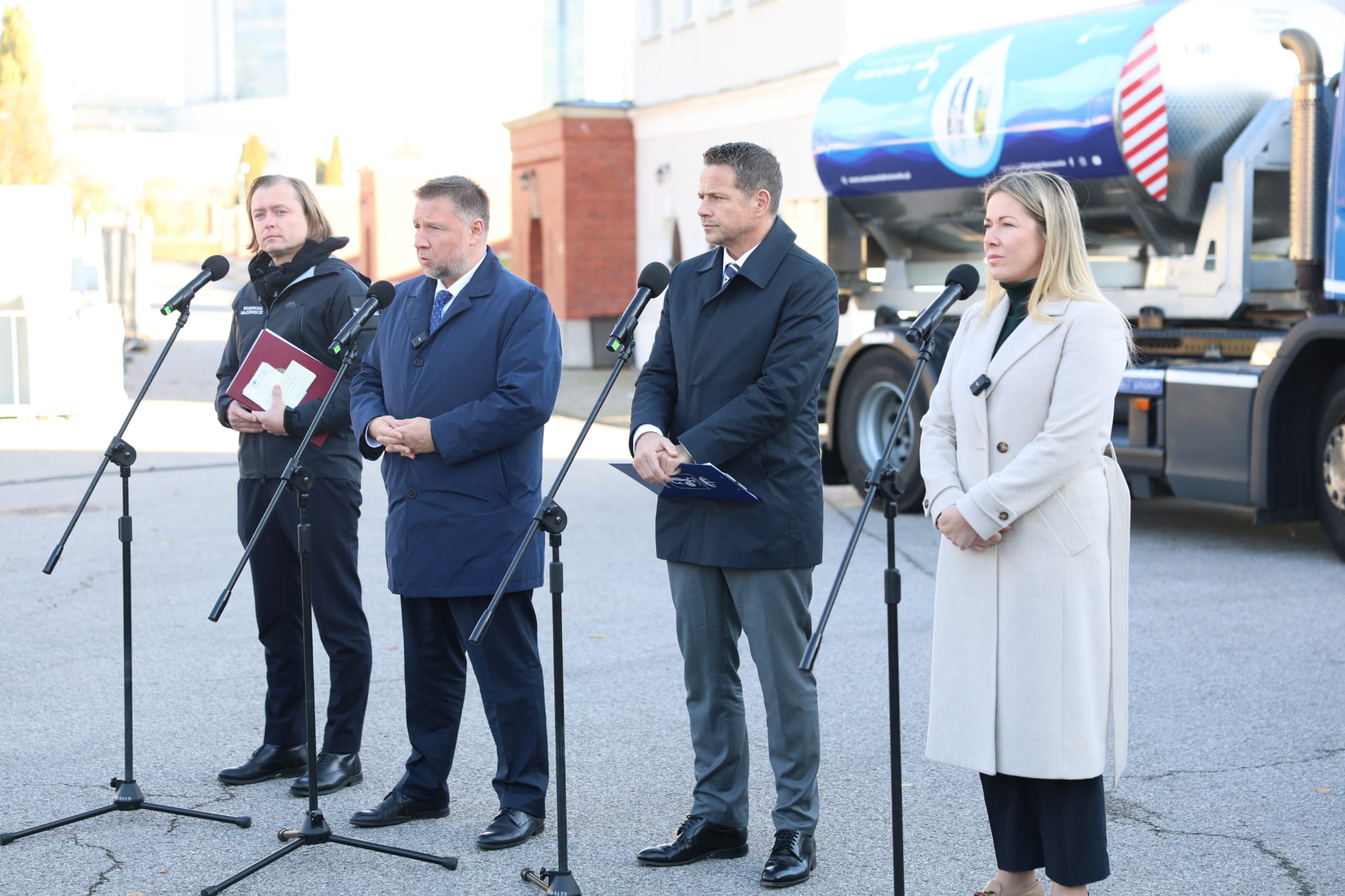 W konferencji prasowej na terenie warszawskich wodociągów wzięli również udział wojewoda mazowiecki Mariusz Frankowski i prezydent Warszawy Rafał Trzaskowski.