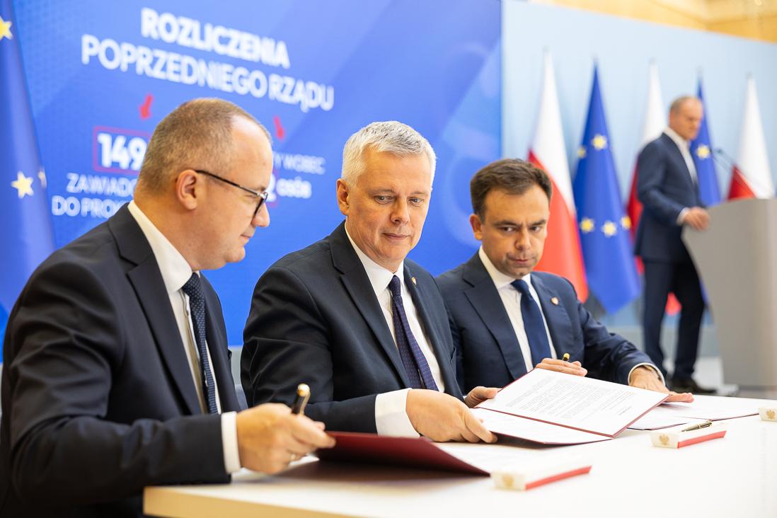 Minister Spraw Wewnętrznych i Administracji Tomasz Siemoniak, Minister Sprawiedliwości Adam Bodnar i Minister Finansów Andrzej Domański podpisali w piątek, 9 sierpnia br., międzyresortowe porozumienie o współpracy w celu dokonania oceny ochrony interesu Skarbu Państwa w procesie gospodarowania środkami w latach 2016-2023. Porozumienie pozwoli na skoordynowanie działań podległych ministrom służb i ma dotyczyć zabezpieczenia odzyskiwania mienia Skarbu Państwa wydanego niezgodnie z prawem.