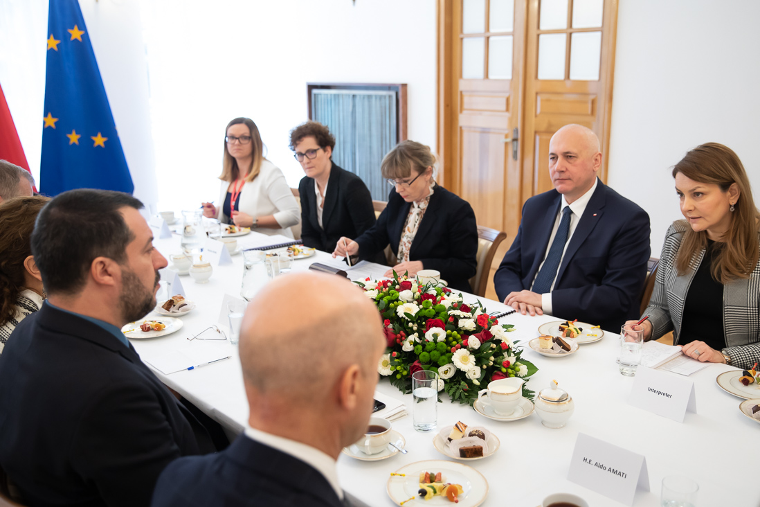 Jak powiedział szef polskiego MSWiA, dzisiejsze spotkanie z wicepremierem Matteo Salivinim było kontynuacją i rozwinięciem dyskusji przeprowadzonej przez obu ministrów podczas konferencji G6, która odbyła się zeszłym roku w Lyonie. Dziś szefowie resortów spraw wewnętrznych Polski i Włoch poruszyli tematy dotyczące migracji, bezpieczeństwa obu państw oraz całej Europy, a także kwestie wzajemnej współpracy np. w zakresie wspólnych działań policji. Omówiono też pomysł ujednolicenia przepisów dotyczących asysty honorowej podczas uroczystości organizowanych przez polskich kombatantów na terenie Włoch, m.in. na Monte Cassino.