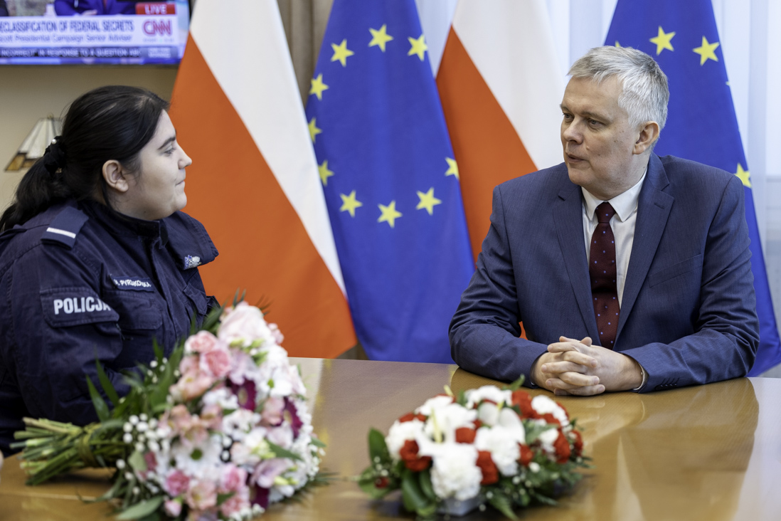 Minister Tomasz Siemoniak spotkał się ze st. post. Mariolą Pyrzakowską oraz jej mężem Kamilem Pyrzakowskim w siedzibie MSWiA, aby pogratulować bohaterskiego czynu i podziękować za odważną postawę.