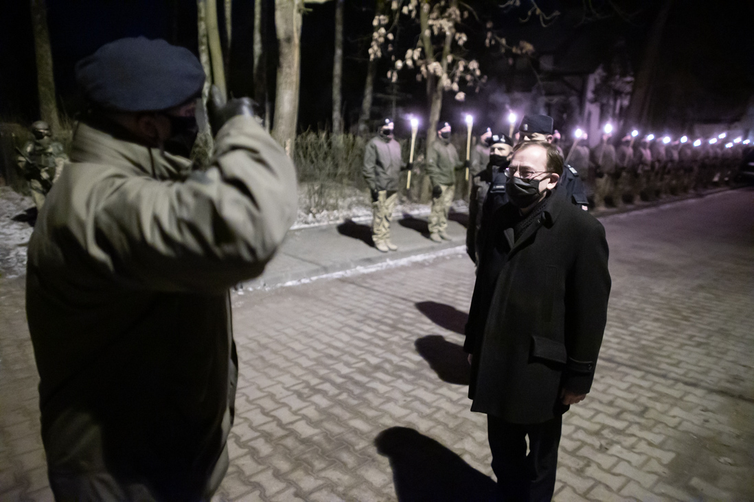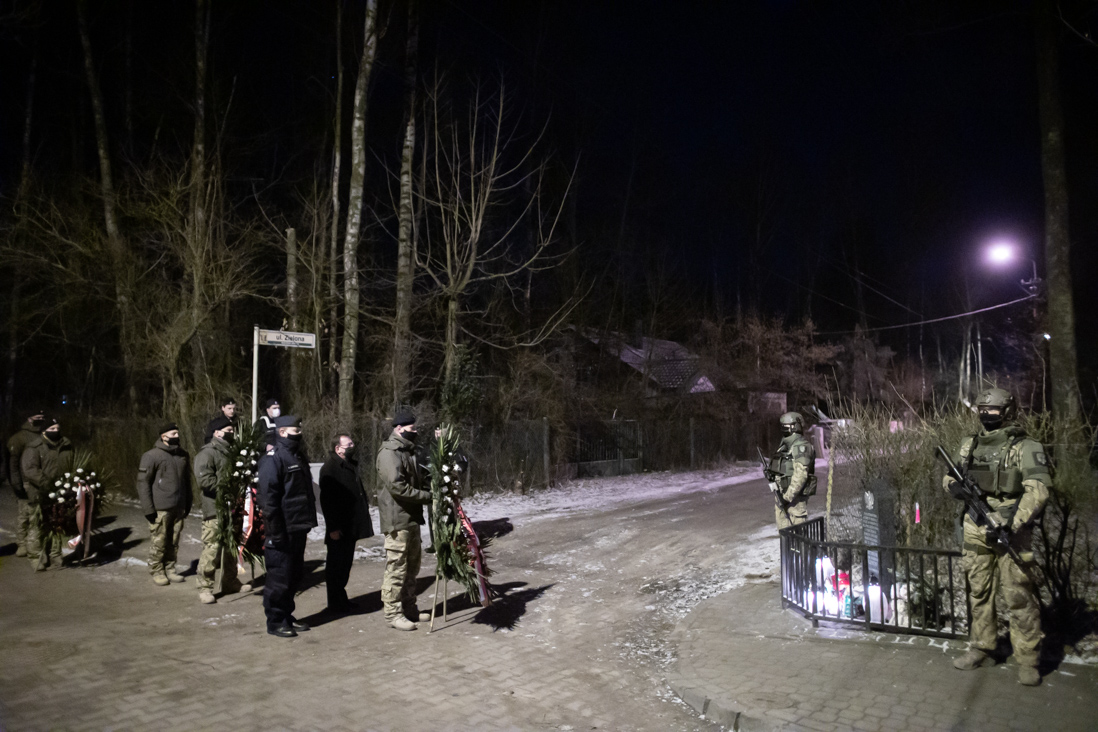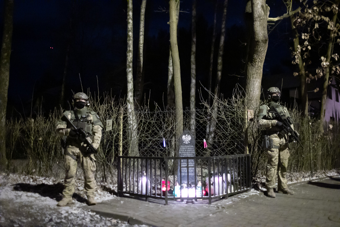 Minister Mariusz Kamiński razem z nadinsp. Pawłem Dobrodziejem, zastępcą Komendanta Głównego Policji oraz insp. Dariuszem Ziębą, dowódcą Centralnego Pododdziału Kontrterrorystycznego Policji „BOA”, złożyli w nocy w Magdalence wieniec pod pomnikiem upamiętniającym poległych policjantów.