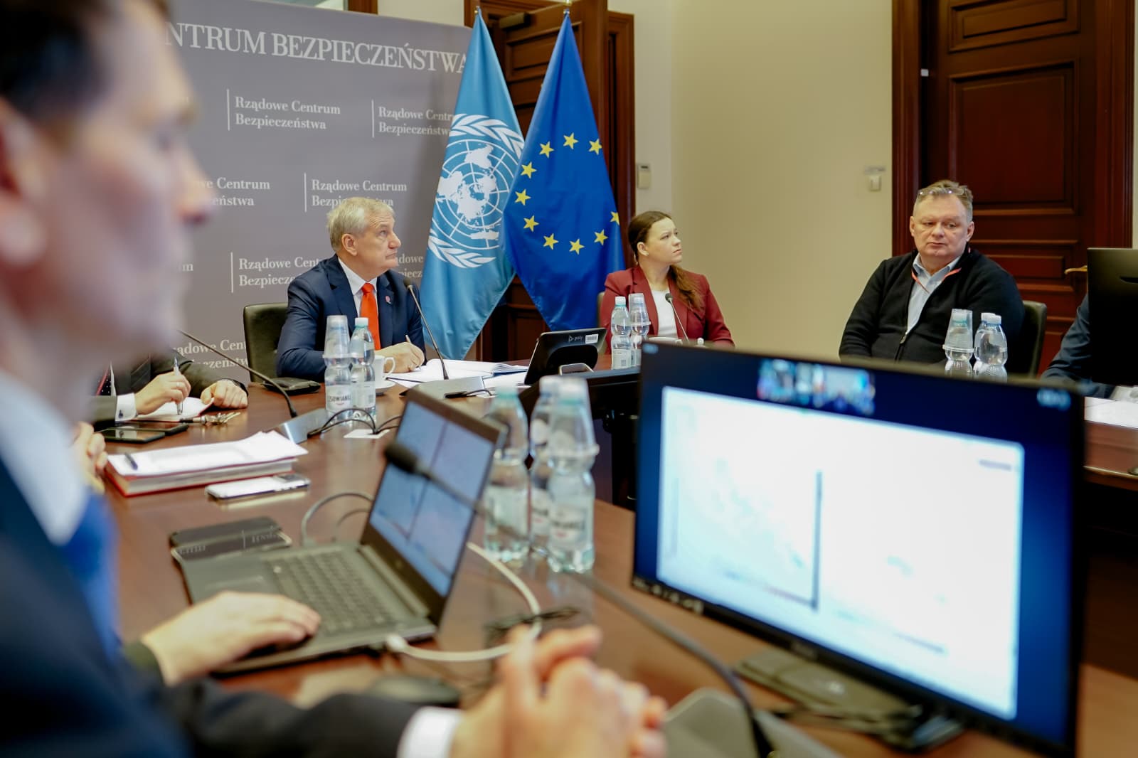 Wiceminister Wiesław Szczepański wziął udział w kolejnym spotkaniu sztabowym w Rządowym Centrum Bezpieczeństwa, by osobiście nadzorować pracę służb podczas fali ekstremalnych mrozów. MSWiA podkreśla, że państwo czuwa, a policjanci i strażacy pracują bez przerwy - tylko ostatniej doby w akcji „Zima" brało udział ponad 11 tysięcy funkcjonariuszy. Służby sprawdziły niemal 10 tysięcy osób w kryzysie bezdomności, a w najbardziej dotkniętych zimnem regionach strażacy udostępnili 27 namiotów grzewczych, gdzie każdy może otrzymać pomoc i gorący napój.