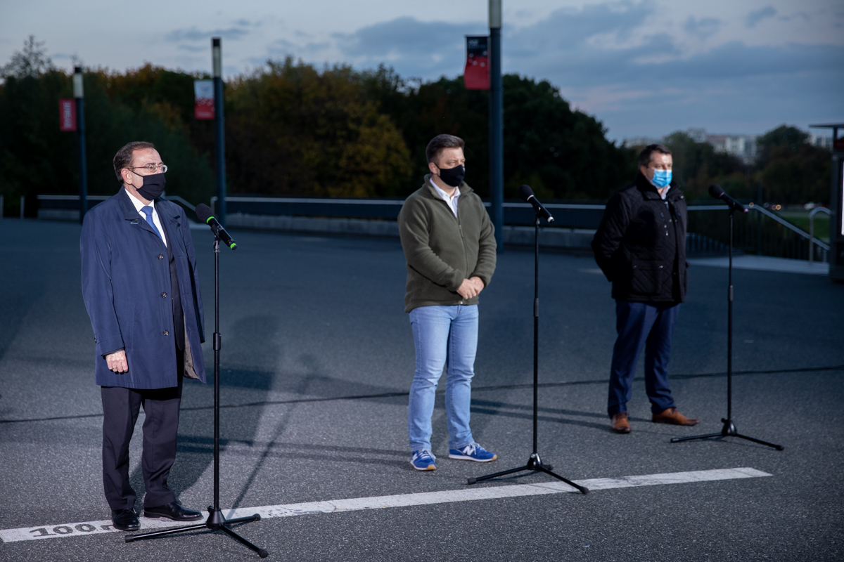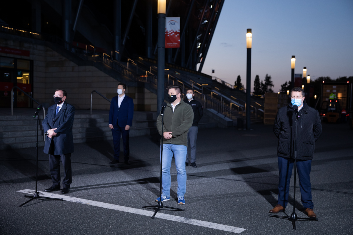 – Pandemia to zagrożenie dla każdego z nas. Tu niezwykłą pracę wykonuje personel medyczny i wszystkie inne służby. Poświęcają swój czas, ryzykują swoje życie i zdrowie – powiedział Michał Dworczyk, szef Kancelarii Premiera. Dodał, że pomimo tworzenia kolejnych miejsc w dotychczasowych szpitalach, rząd myśli o wszystkich wariantach rozwoju pandemii.
