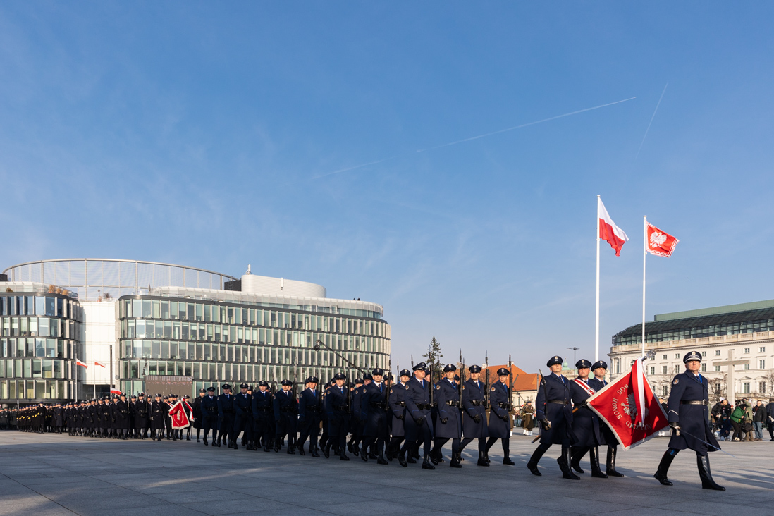 Na placu Piłsudskiego odbyła się też uroczysta defilada pododdziałów z okazji 103. rocznicy odzyskania przez Polskę niepodległości. Wzięły w niej udział służby podległe MSWiA – Policja, Straż Graniczna i Państwowa Straż Pożarna.