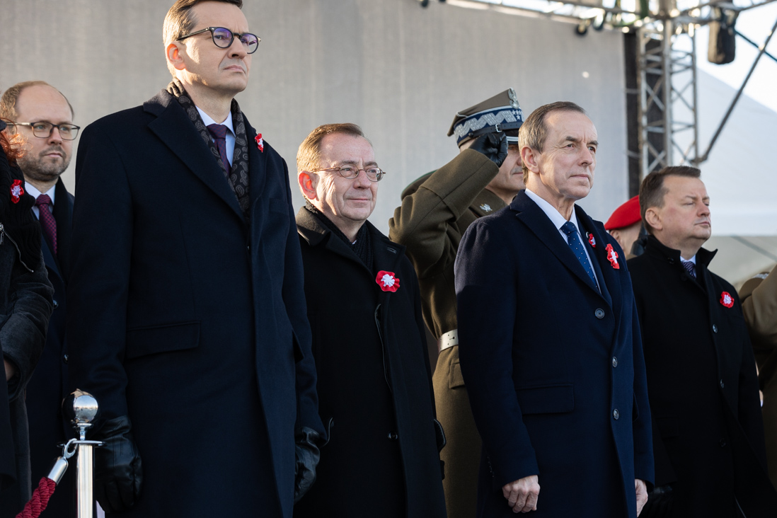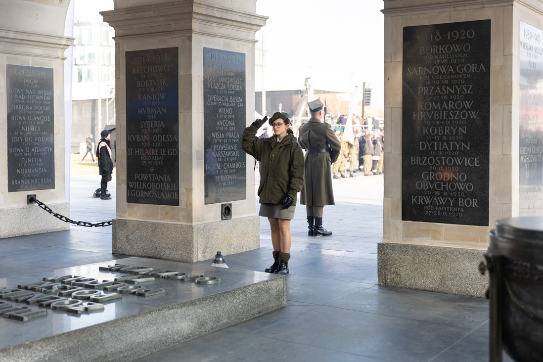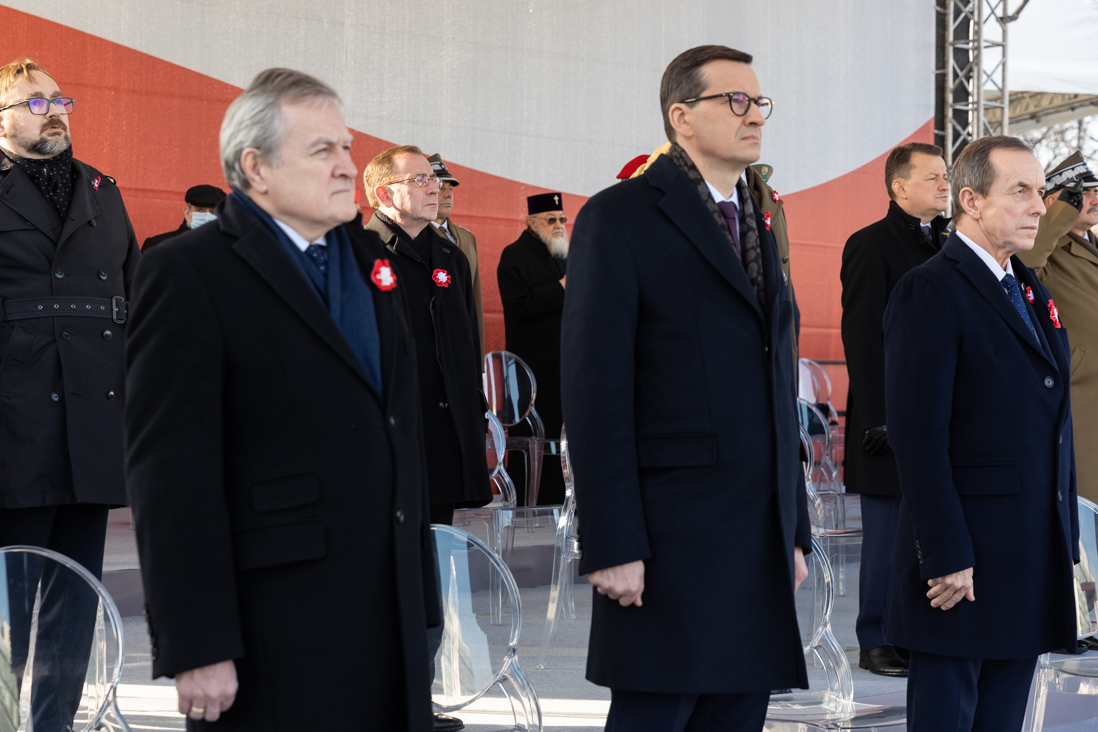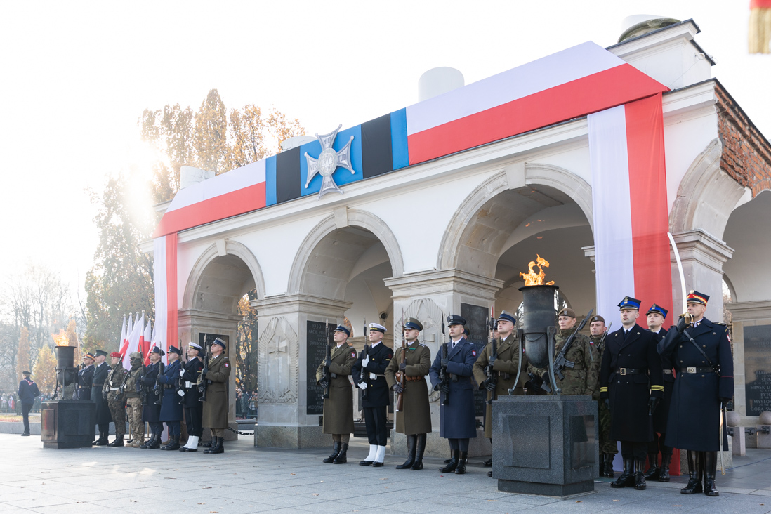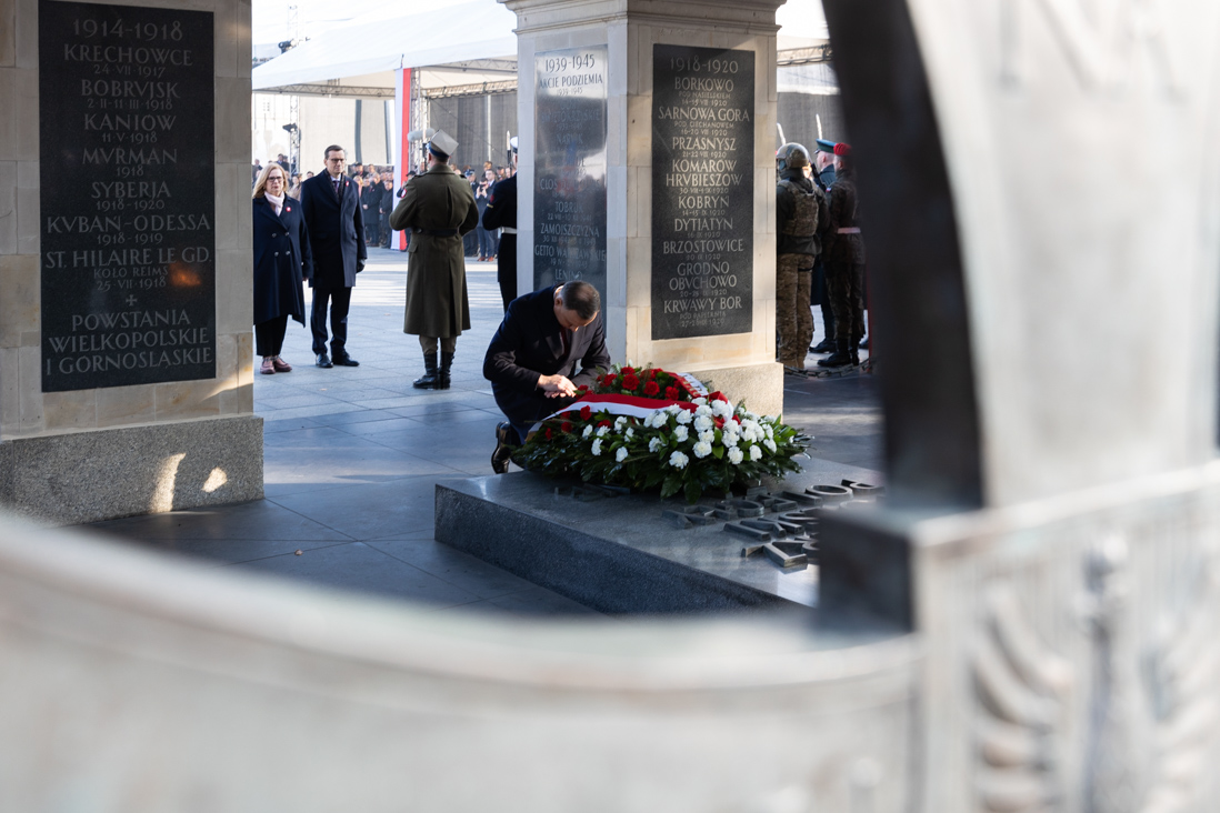 W południe przed Grobem Nieznanego Żołnierza odbyły się centralne uroczystości z okazji Narodowego Święta Niepodległości m.in. uroczysta odprawa wart. Wieniec od Narodu na płycie Grobu Nieznanego Żołnierza złożyli wspólnie: prezydent Andrzej Duda, premier Mateusz Morawieckiego, marszałek Senatu Tomasz Grodzki oraz wicemarszałek Sejmu Małgorzata Gosiewska. W uroczystościach na placu Marszałka Józefa Piłsudskiego uczestniczył minister Mariusz Kamiński.
