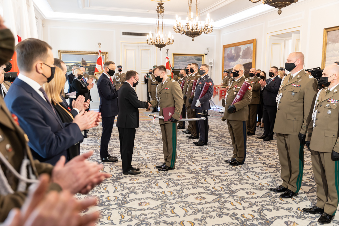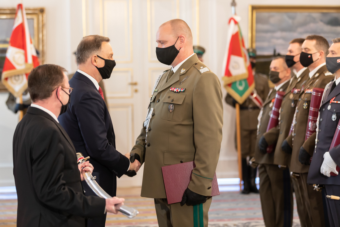 Z całego serca dziękuję Panom Generałom za służbę, która umożliwiła wprowadzenie w korpus generalicji RP. Wierzę w to, że do tych gwiazdek, które dziś Panowie Generałowie otrzymaliście, dojdą kolejne za wierną i zaangażowaną służbę, za zasługi dla Rzeczpospolitej - prezydent Andrzej Duda. Jednocześnie podkreślił, że po raz pierwszy na pasie granicznym zmagamy się z atakiem hybrydowym. - Dziś w obronie granicy uczestniczy Straż Graniczna, Policja i Wojsko Polskie. Jestem za to ogromnie wdzięczny. Wierzę, że uda nam się doprowadzić do powrotu normalności