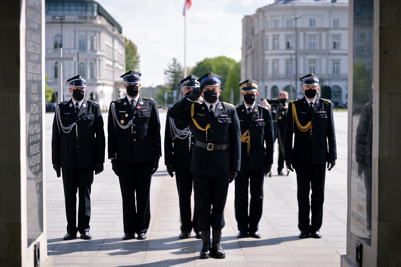 W poniedziałek rano marszałek Sejmu Elżbieta Witek, minister Mariusz Kamiński, wiceminister Maciej Wąsik, komendant główny PSP st. bryg. Andrzej Bartkowiak oraz prezes Zarządu Głównego Związku OSP RP Waldemar Pawlak złożyli wieńce na Grobie Nieznanego Żołnierza w Warszawie.