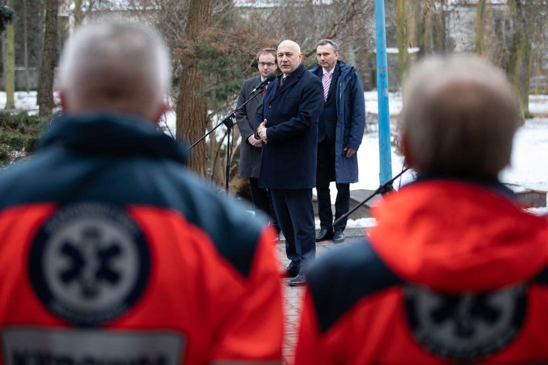 W uroczystości przekazania samochodów wzięli też udział wiceminister Krzysztof Kozłowski, Marcin Maruszewski, dyrektor CSK MSWiA oraz Bogusława Pszczółkowska, kierownik Polikliniki w Siedlcach, Andrzej Bartosiak kierownik Polikliniki w Ciechanowie i Zdzisław Petrykowski, kierownik Polikliniki w Radomiu.