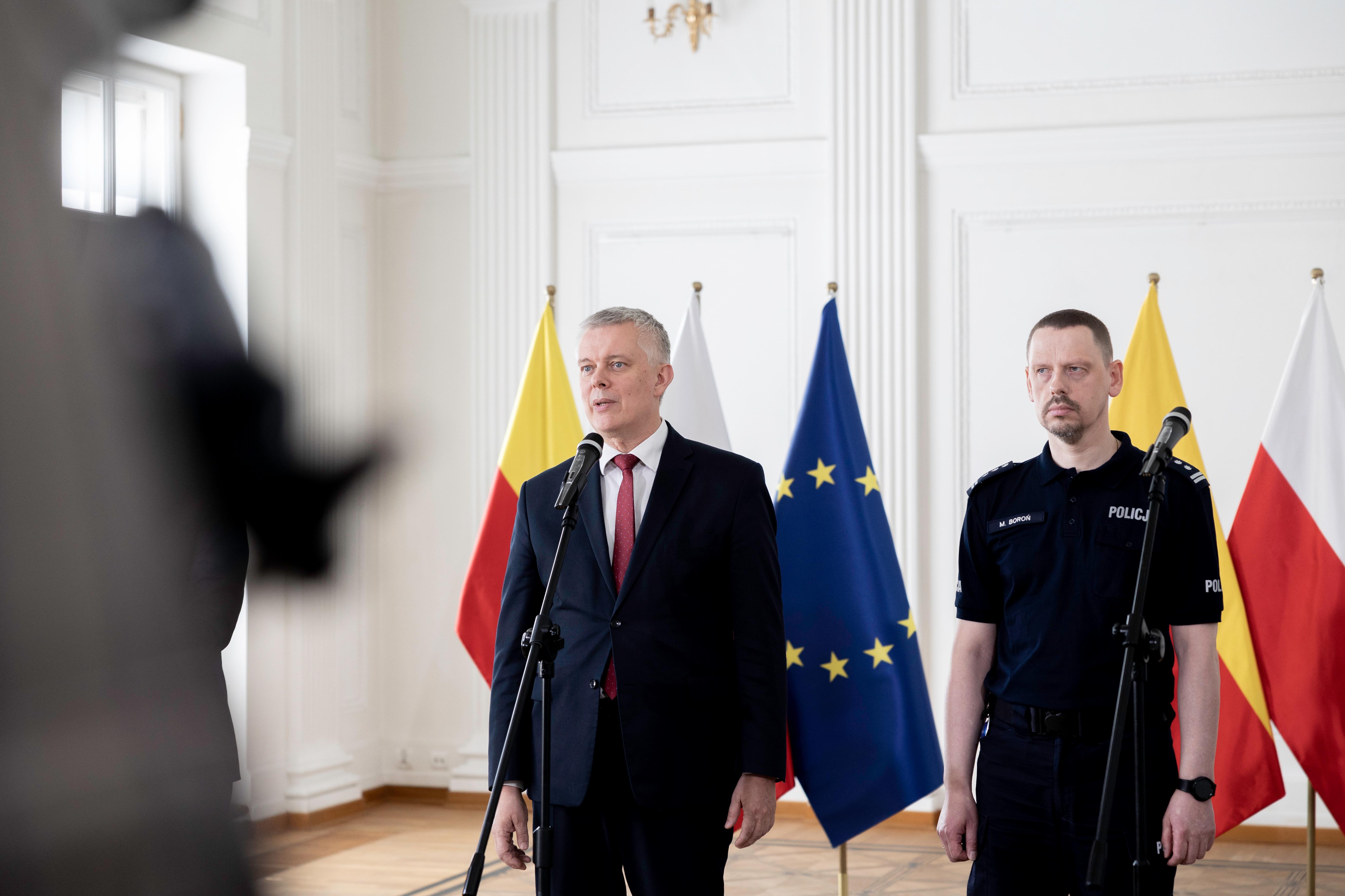 Szef MSWiA odniósł się także do sytuacji na naszej wschodniej granicy, gdzie policjanci wspierają funkcjonariuszy Straży Granicznej i żołnierzy pełniących służbę na tym odcinku.