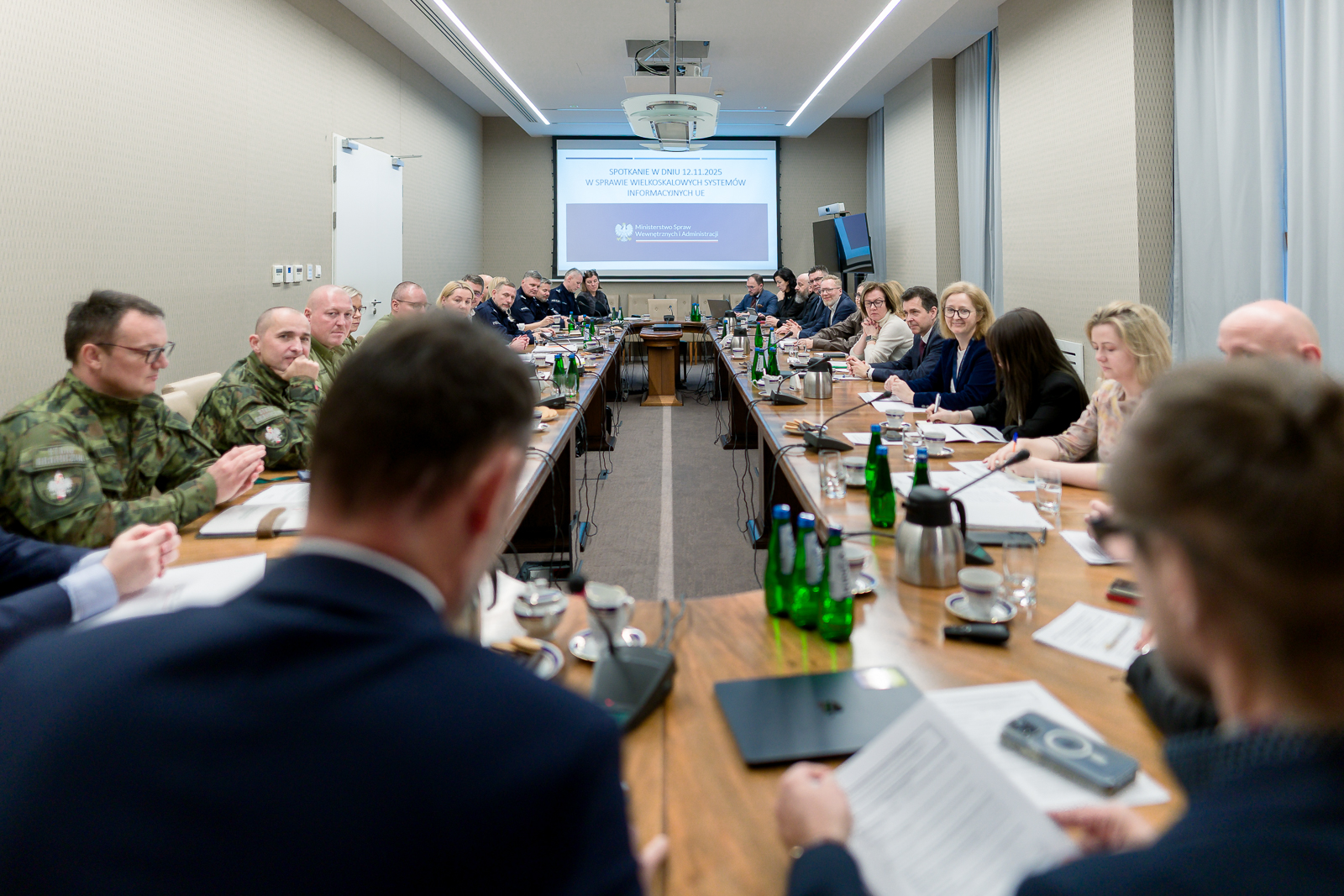 W środę, 12 listopada br., w siedzibie Ministerstwa Spraw Wewnętrznych i Administracji odbyło się XVIII Posiedzenie Rady Zespołu do spraw Zapewnienia Współpracy Polskiej Administracji Rządowej z Wielkoskalowymi Systemami Informacyjnymi Unii Europejskiej. Tematem przewodnim spotkania było przypomnienie o uruchomionym niedawno systemie Wjazdu/Wyjazdu oraz omówienie postępów w implementacji pozostałych systemów informacyjnych Unii Europejskiej - ETIAS, Eurodac, oraz ECRIS-TCN, a także ich wzajemnej interoperacyjności.