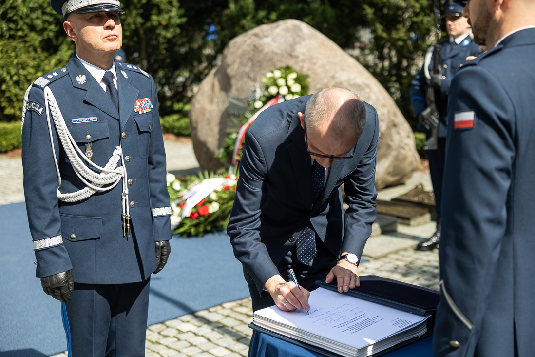 Podczas uroczystości wiceminister Błażej Poboży wraz z komendantem gen. insp. Jarosławem Szymczykiem złożyli wieniec pod obeliskiem „Poległym Policjantom – Rzeczpospolita Polska” na dziedzińcu Komendy Głównej Policji i pod Tablicą Pamięci w siedzibie KGP.