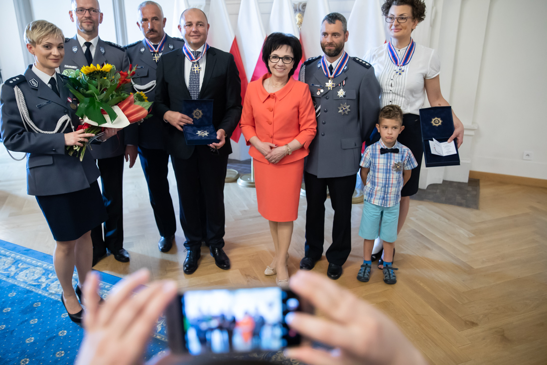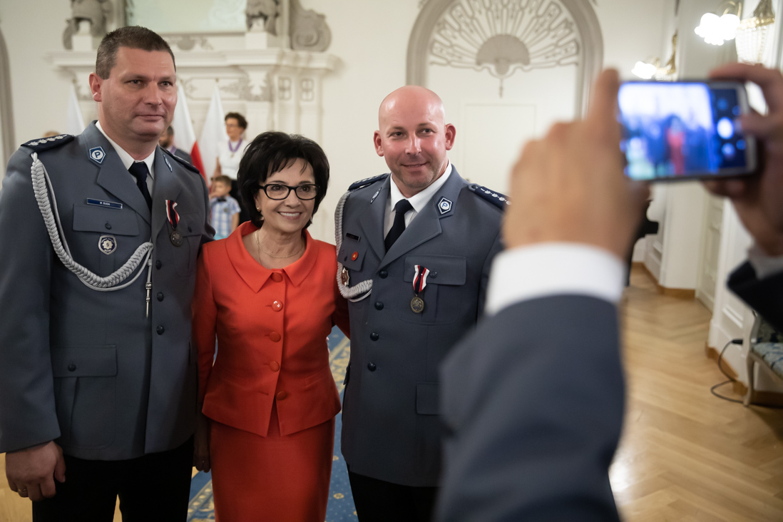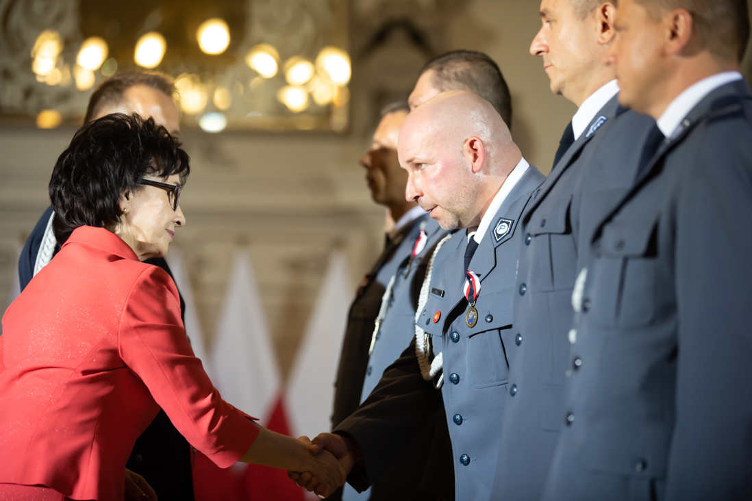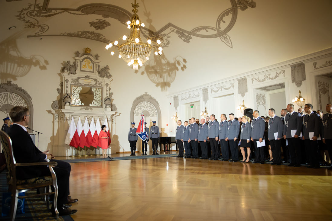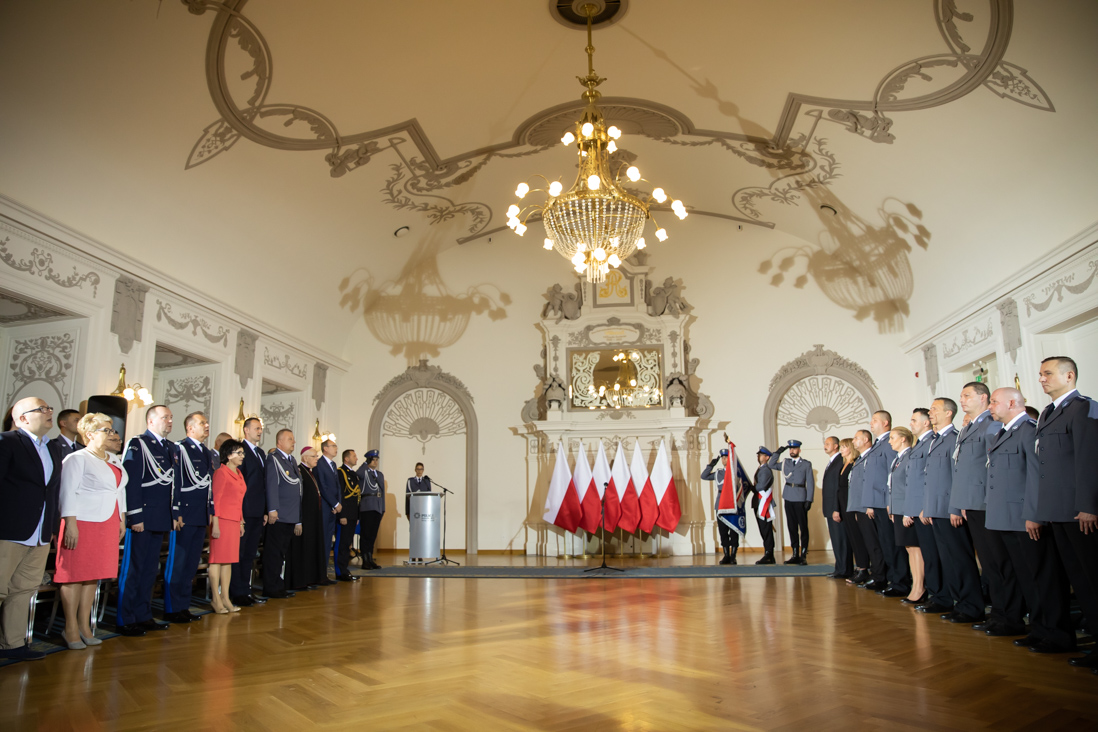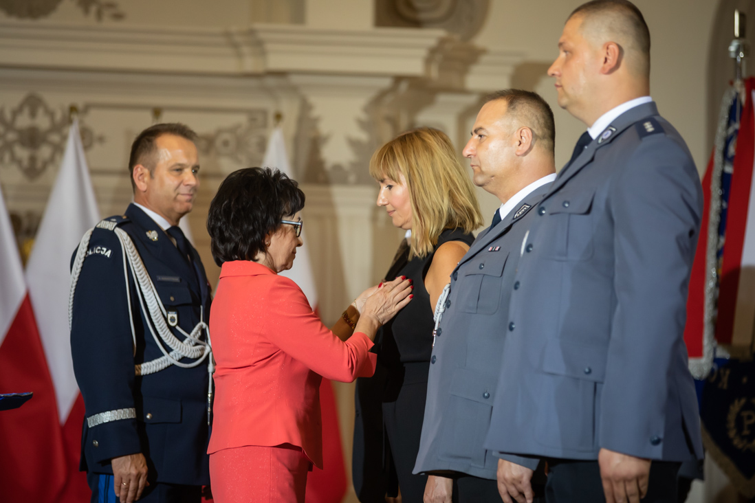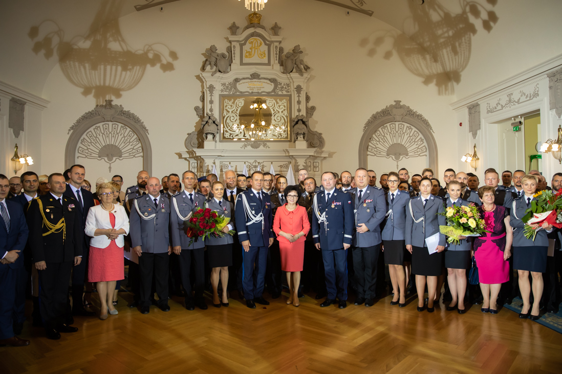 Podczas uroczystości zostały wręczone medale „Za Długoletnią Służbę”, odznaki „Zasłużony Policjant” oraz awanse na wyższe stopnie służbowe. Medale „Za Długoletnią Służbę”, nadawane przez Prezydenta RP, otrzymało 4 funkcjonariuszy i pracowników cywilnych. Odznakami „Zasłużony Policjant” wyróżniono 7 osób. Mianowanie na wyższy stopień służbowy podczas uroczystości otrzymało 31 policjantów. – Dziś otrzymaliście wyróżnienia, nagrody i awanse. Zapracowaliście na to. Tak, jak zapracowaliście na bardzo wysoką ocenę ze strony społeczeństwa. Aż 75 proc. Polaków dobrze ocenia pracę Policji – powiedziała Elżbieta Witek.