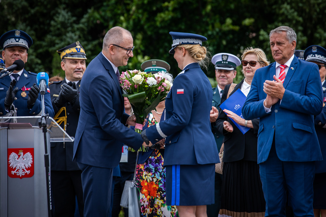 Podsekretarz stanu w MSWiA pogratulował nagrodzonym i odznaczonym przez Prezydenta RP oraz Ministra Spraw Wewnętrznych i Administracji. W sposób szczególny wyróżnił komendant-rektor nadinsp. dr hab. Iwonę Klonowską, która została trzecią w historii Polski kobietą mianowaną w Policji na stopień generalski.