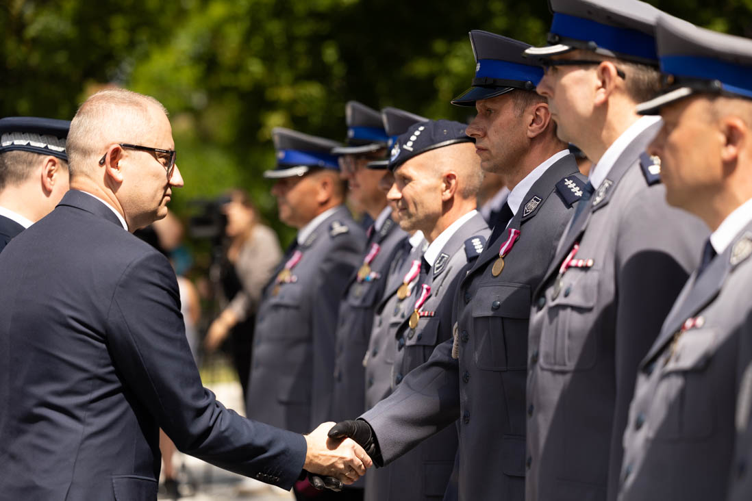 W piątek, 29 lipca br. na Warmii i Mazurach odbyły się obchody Święta Policji. Wiceminister Błażej Poboży uczestniczył w uroczystościach w Orzyszu, podczas których wręczył policjantom medale, odznaczenia, a także awanse na wyższe stopnie i stanowiska służbowe. W wydarzeniu udział brali również zastępca Komendanta Głównego Policji nadinsp. Paweł Dobrodziej, wojewoda warmińsko-mazurski Artur Chojecki oraz komendant wojewódzki Policji nadinsp. Tomasz Klimek.