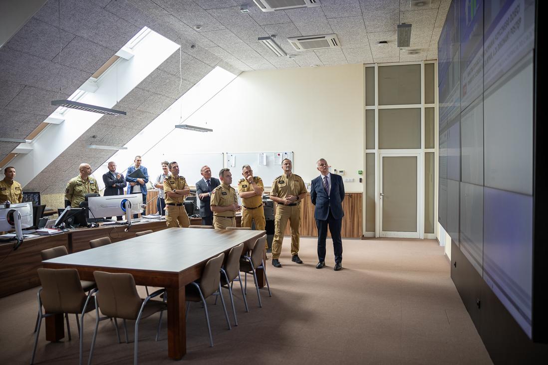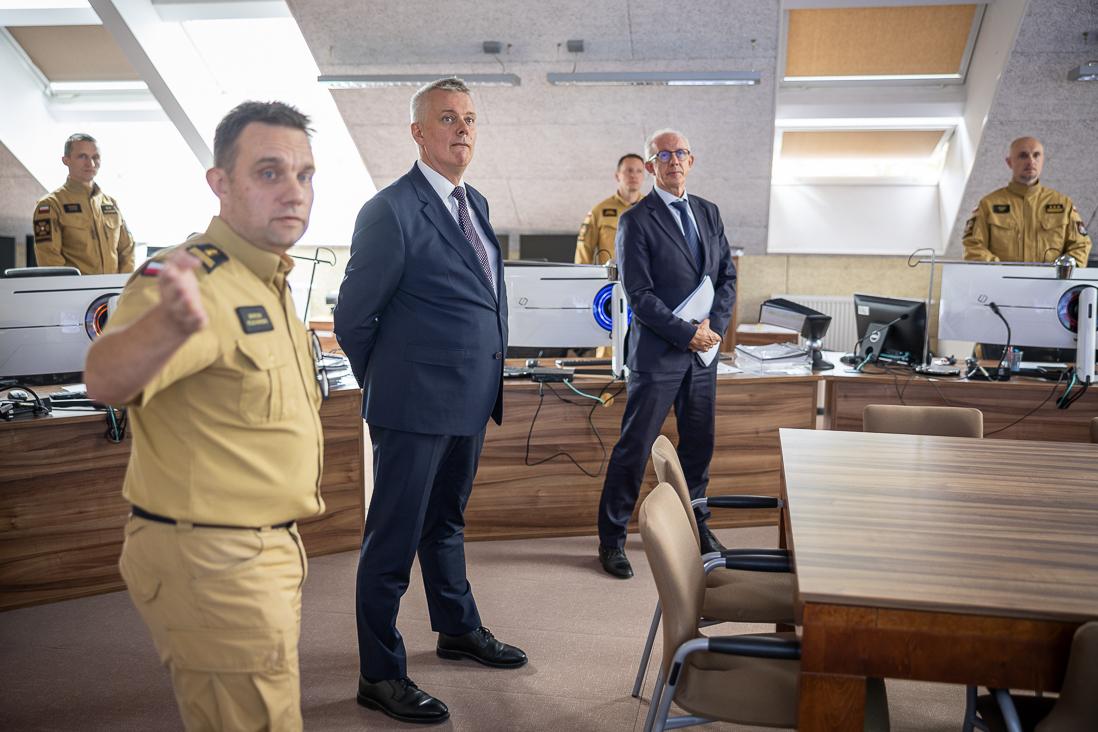 W trakcie wizyty w Komendzie Głównej Straży Pożarnej, minister i wiceministrowie odwiedzili Stanowisko Kierowania Komendanta Głównego PSP, gdzie mogli zapoznać się z bieżącą pracą strażaków, odpowiedzialnych za dysponowanie sił i środków do konkretnych zdarzeń.