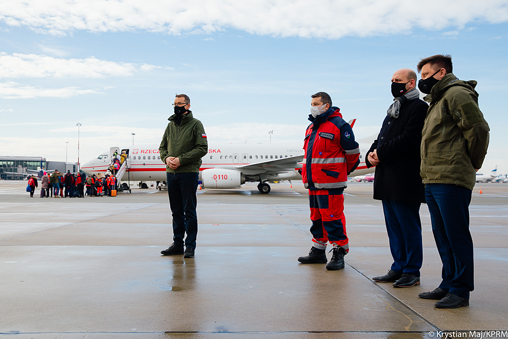 W piątkowe południe (22 stycznia br.) w Wojskowym Porcie Lotniczym Warszawa-Okęcie z biorącymi udział w akcji medykami spotkał się premier Mateusz Morawiecki. – Trudno wyobrazić sobie czas cięższy niż czas pandemii, ale Polska, Słowacja, Czechy i Węgry, jako V4, współpracują na wielu polach. Solidarność to nie tylko pomoc i bieżące działania, ale też nasza najlepsza marka eksportowa – powiedział szef rządu. Premier przekazał również swoje podziękowania dla Rządowego Centrum Bezpieczeństwa, doktora Artura Zaczyńskiego – zastępcy dyrektora ds. medycznych CSK MSWiA oraz wszystkich medyków, którzy na zasadzie wolontariatu zgłosili się do pomocy na Słowacji.