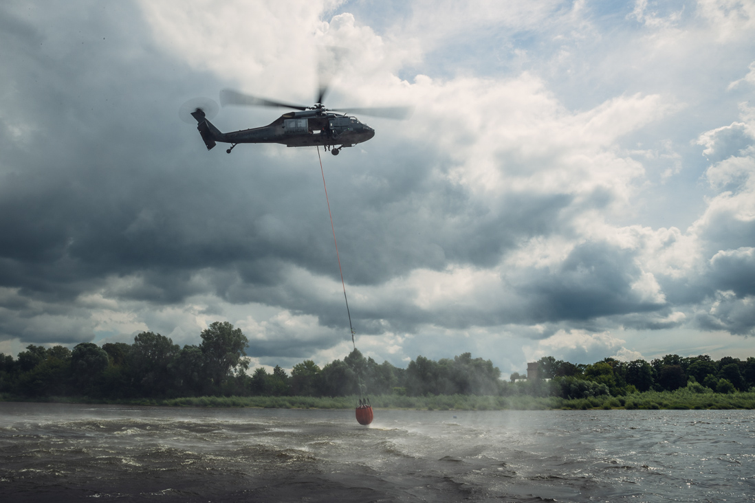 Strażacy będą wspierani przez 8-osobową załogę śmigłowca policyjnego S-70i Black Hawk, z którego będzie się odbywać gaszenie pożarów. Do śmigłowca będą podpinane specjalne zbiorniki do zrzucania wody, tzw. Bambi Bucket. W zależności od potrzeb pod policyjnego Black Hawka typu S-70i podpięty może być mniejszy zbiornik gaśniczy o pojemności co najmniej 1500 litrów i maksymalnej masie do 1650 kg lub większy o pojemności co najmniej 2950 litrów i maksymalnej masie do 3100 kg. Specjalne zbiorniki gaśnicze stosowane są coraz częściej w walce z pożarami z powietrza. Umożliwiają gaszenie rozległych pożarów oraz prowadzenie akcji na dużych, trudnodostępnych terenach.