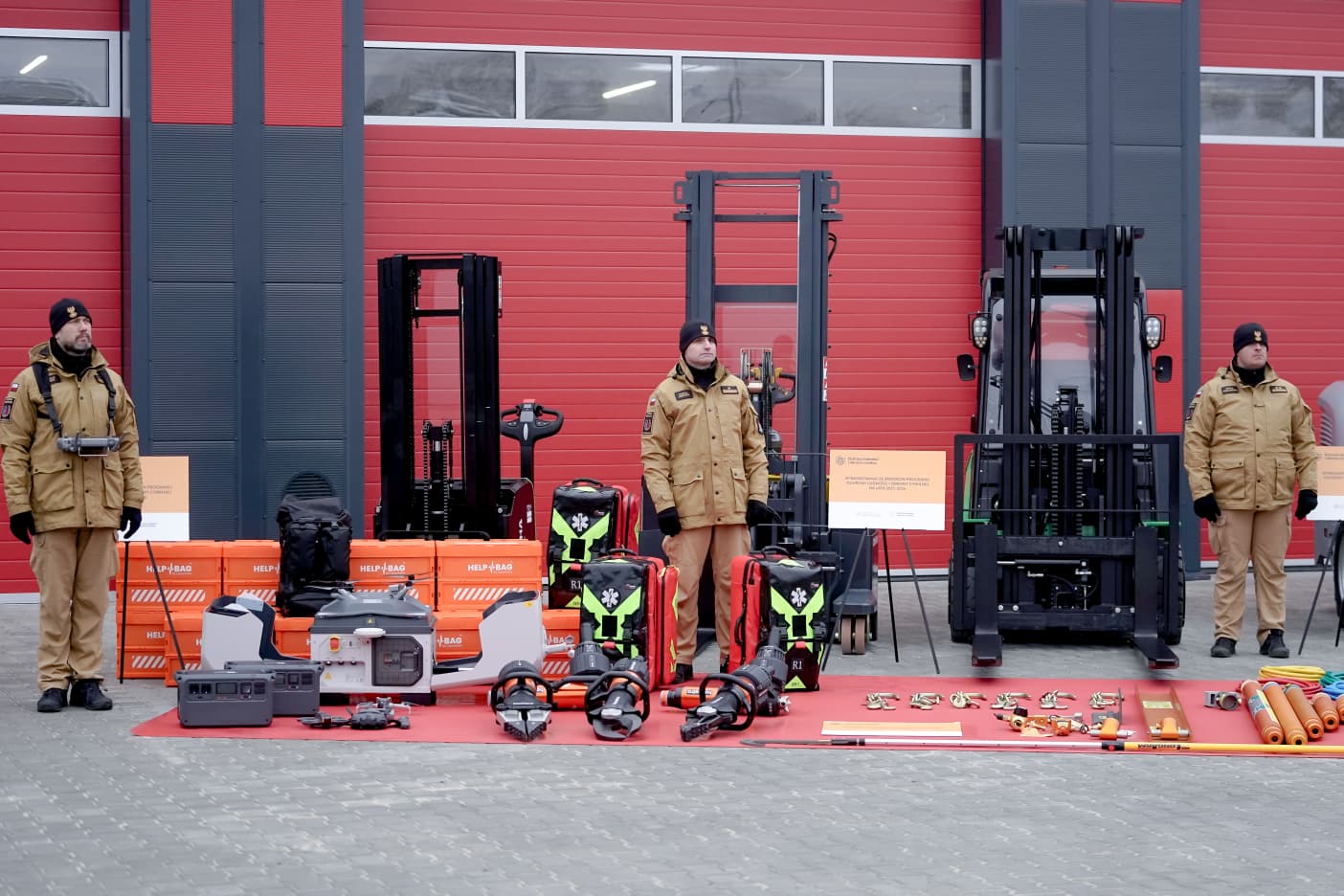 Fundusze z programu OLiOC zasiliły Bazy Szkolenia Poligonowego i Innowacji Ratownictwa Akademii Pożarniczej w Nowym Dworze Mazowieckim. Trafiło tam m.in. 5 specjalistycznych pojazdów, 3 drony i łódź ratownicza. Funkcjonariusze otrzymali także sprzęt ratowniczy i ubrania ochronne. Środki rządowe pozwoliły również rozbudować infrastrukturę dla nowej hali magazynowej, która zostanie przeznaczona na magazyn sprzętu OLiOC.